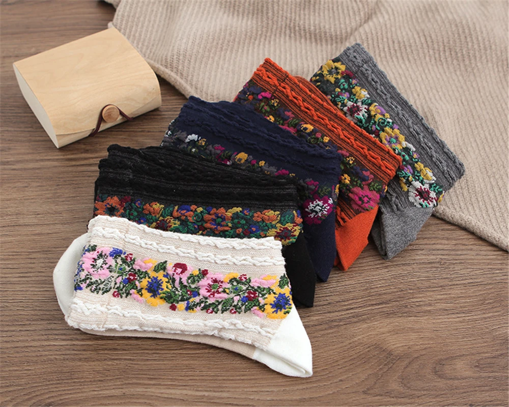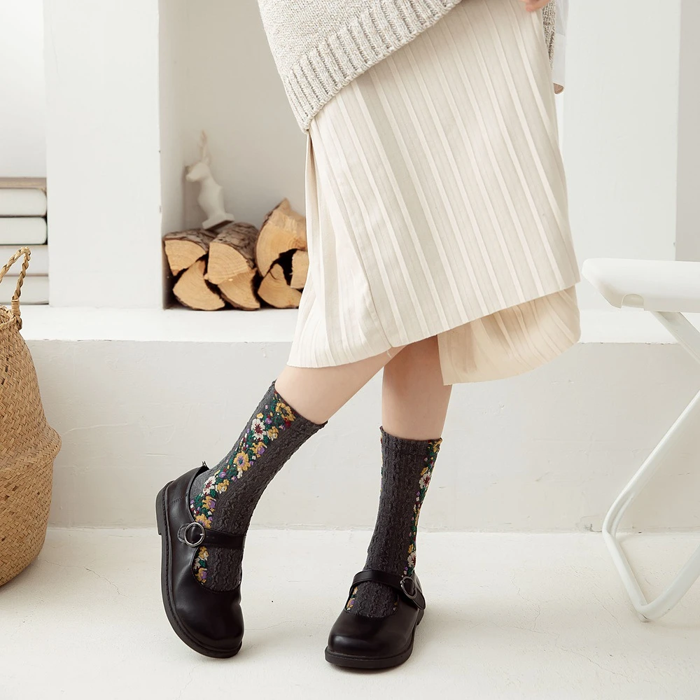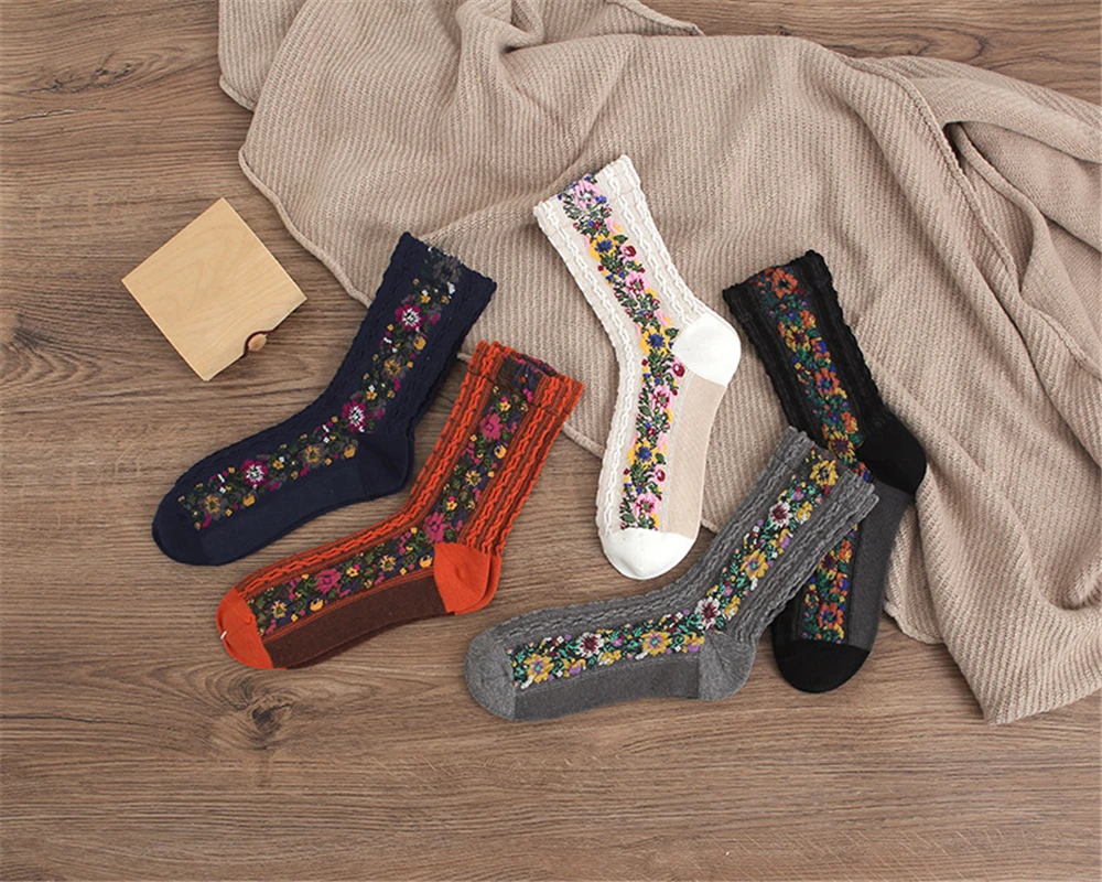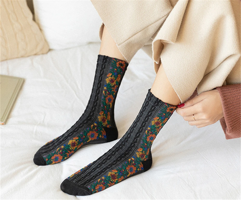 НОВЫЕ шикарные модные женские хлопковые Евро-американские этнические носки с цветами на осень и зиму женские теплые милые дворцовые ретро носки с узором