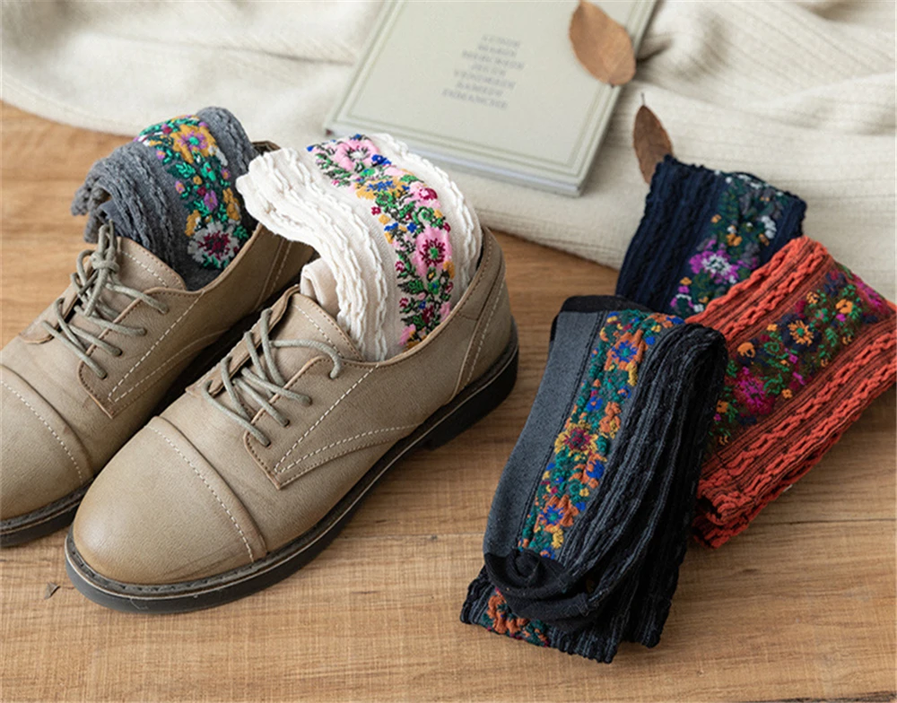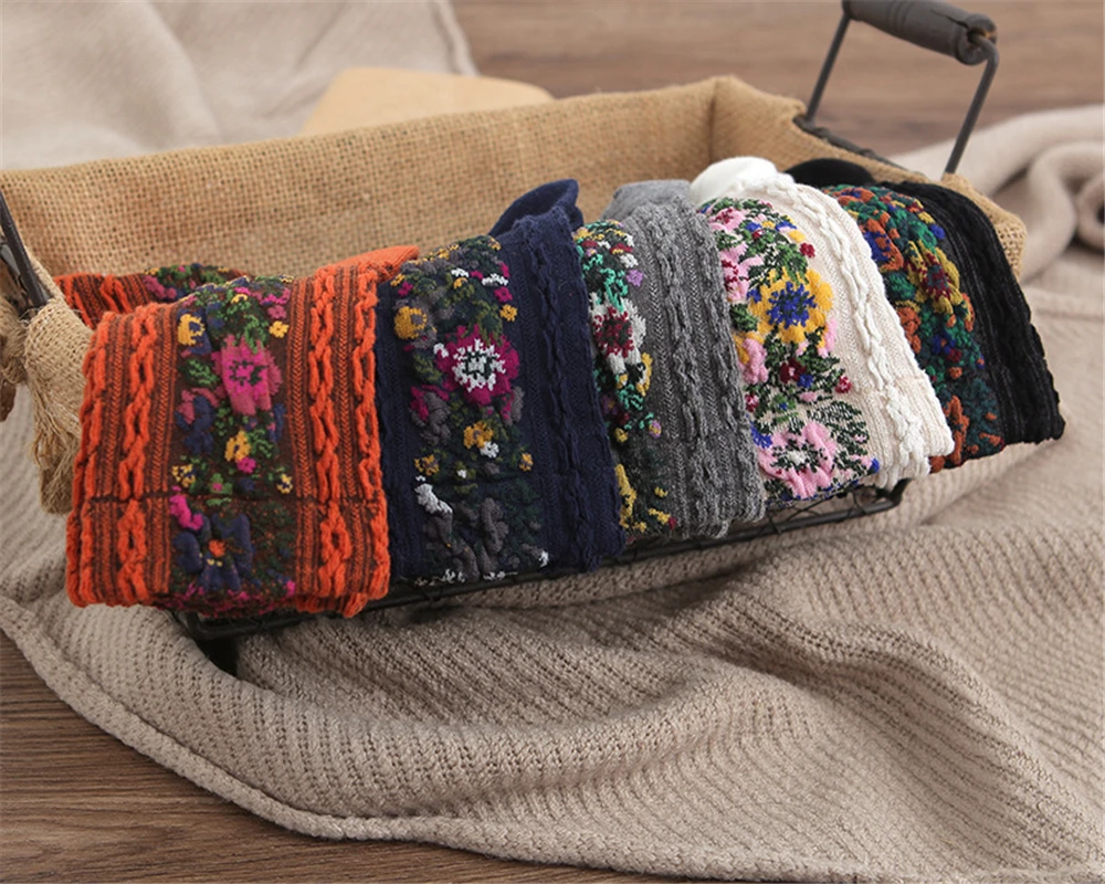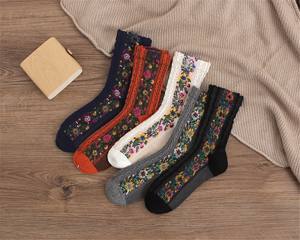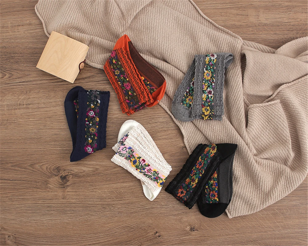 НОВЫЕ шикарные модные женские хлопковые Евро-американские этнические носки с цветами на осень и зиму женские теплые милые дворцовые ретро носки с узором
