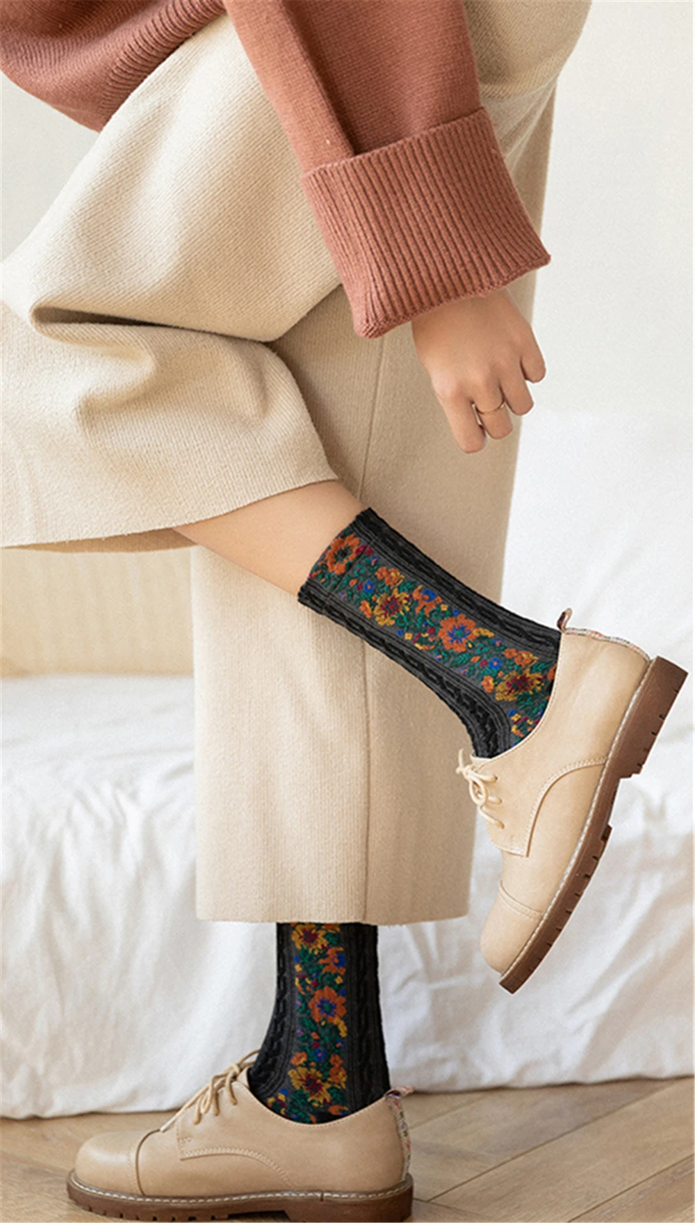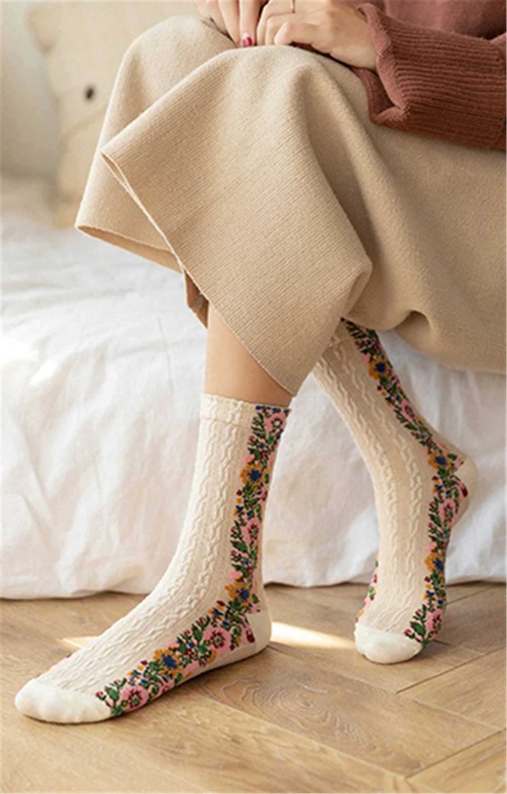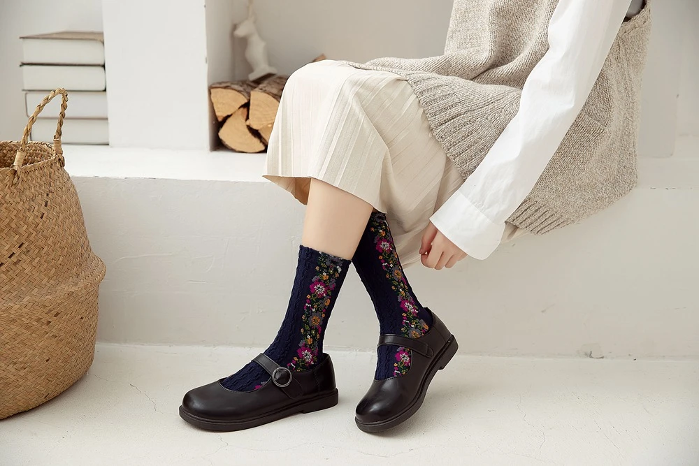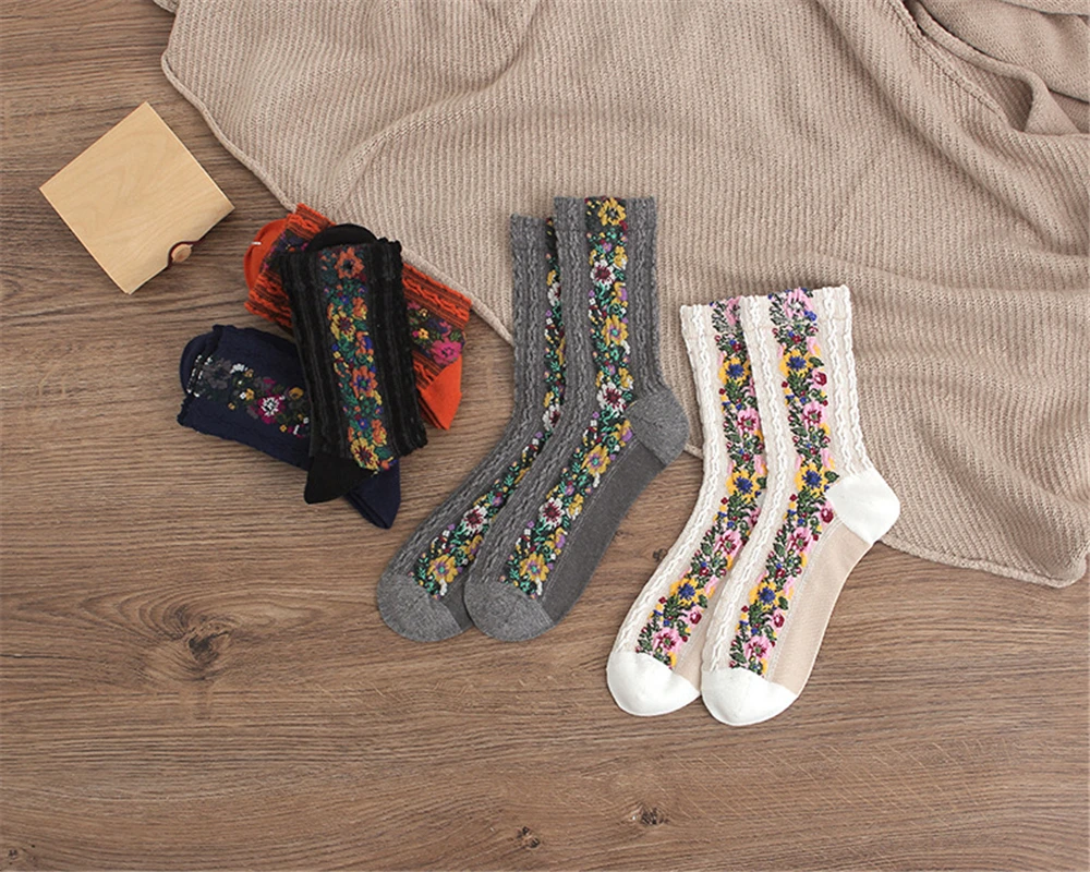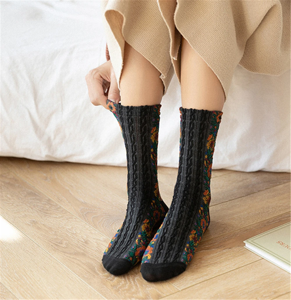 Номер моделиGirls' Retro Flowers Twist Pattern socks