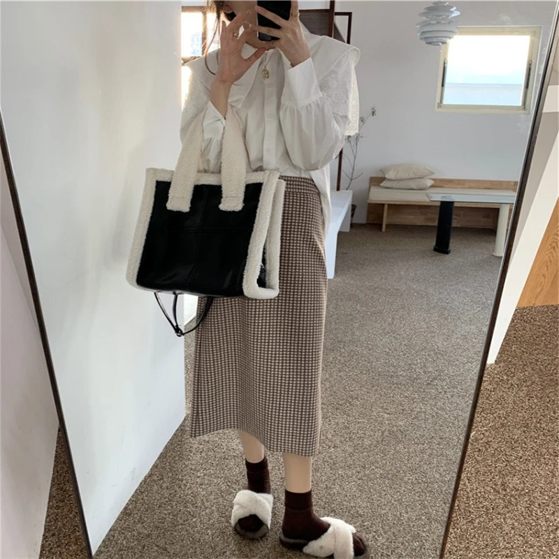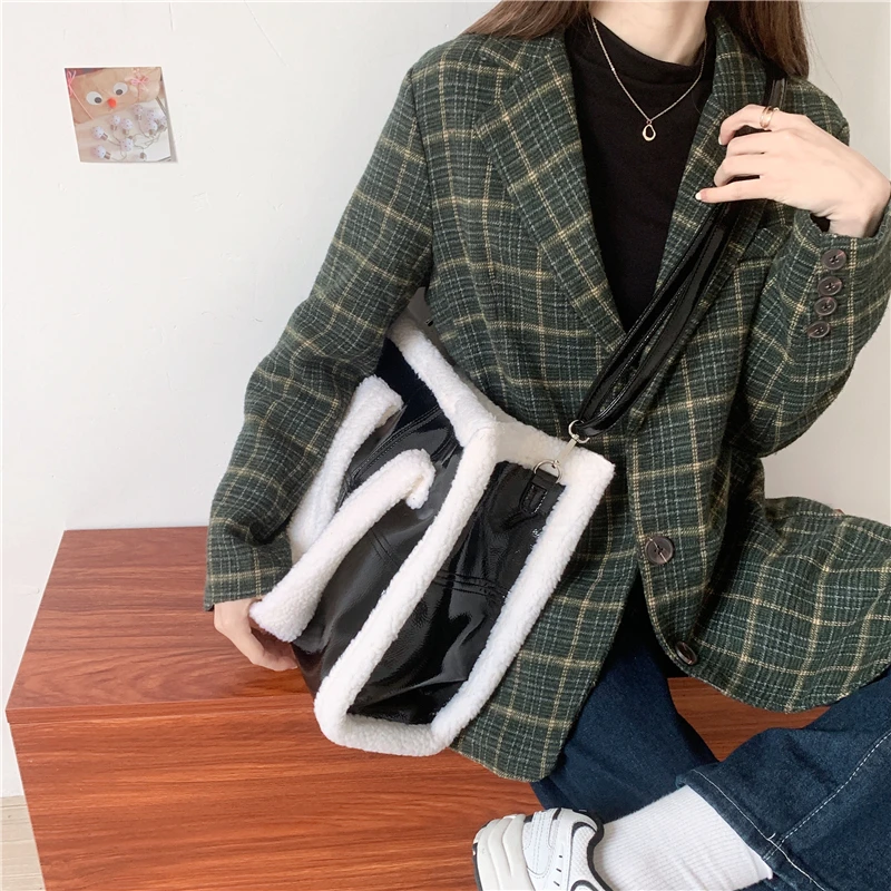 Сумка-мессенджер Женская шерстяная, однотонная, осенняя