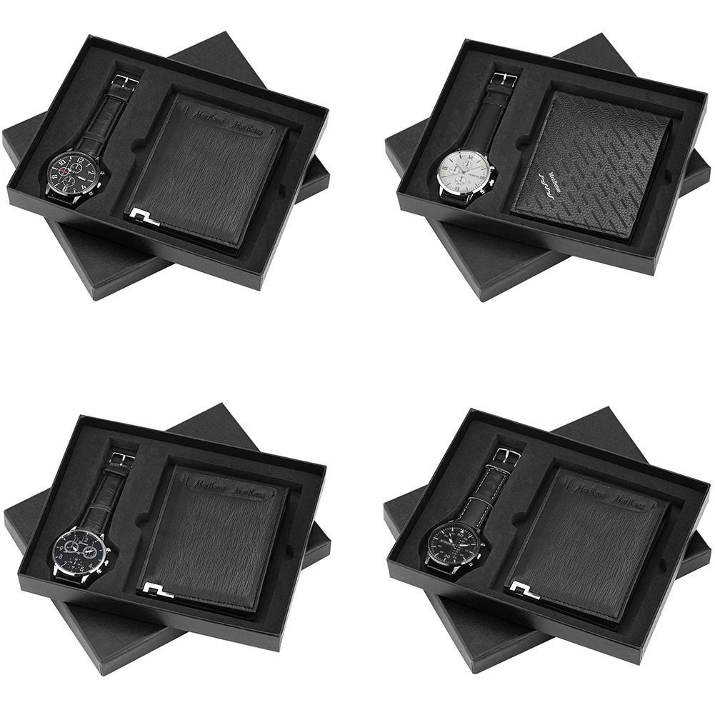 Набор бумажников для мужчин, кварцевые часы, минималистичные кварцевые наручные часы, держатель для карт, кошелек для Муж папа, мальчик, друг