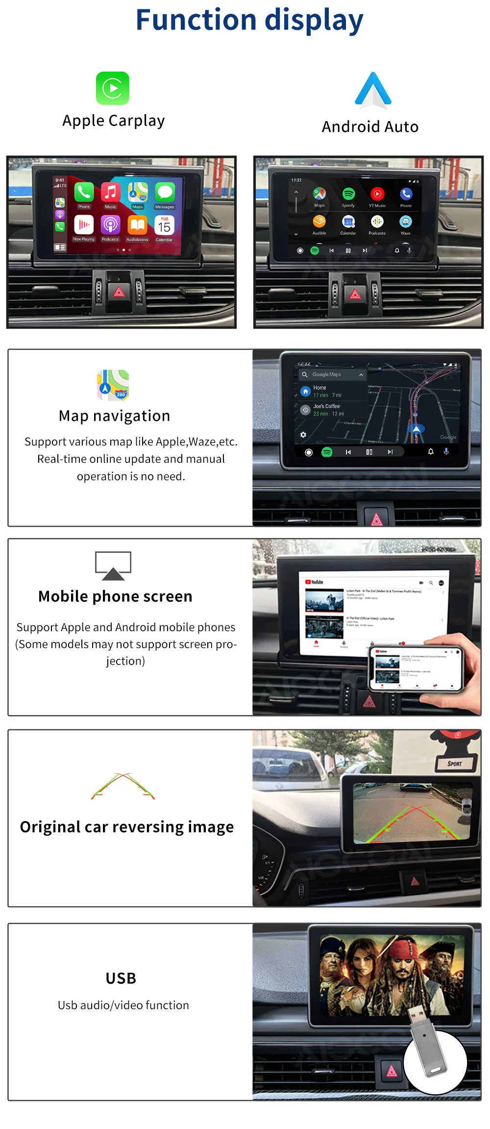 Беспроводной Apple Carplay Android авто интерфейс декодер для AUDI A6 A7 оригинальный экран обновления