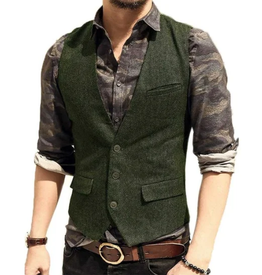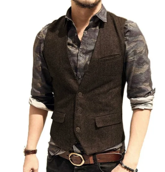 Жилет мужской твидовый с V-образным вырезом, Повседневный шерстяной твидовый жилет, Официальный деловой жилет, 2020