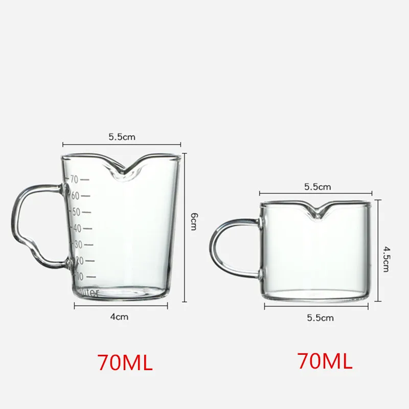 Набор из 2 стеклянных молочных кувшинов 70 мл с двойным носиком, кувшин для кофе, крема, соуса, бариста, кувшин для взбивания молока для кофе, латте
