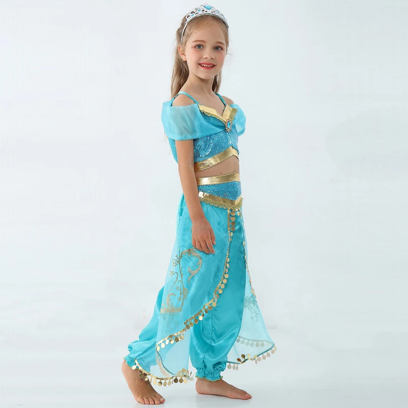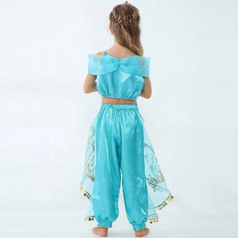 Детское летнее платье принцессы жасмин для девочек, костюм принцессы Аладдин, костюм на Хэллоуин, рождественское видение, топ, юбка, брюки, комплект из двух предметов