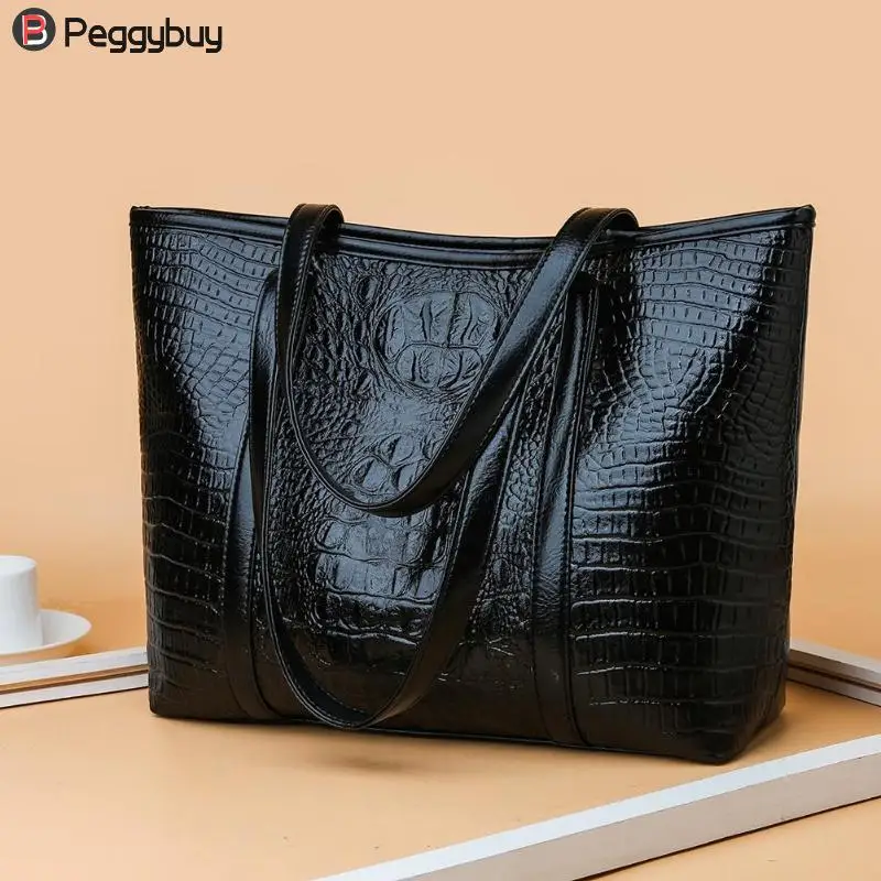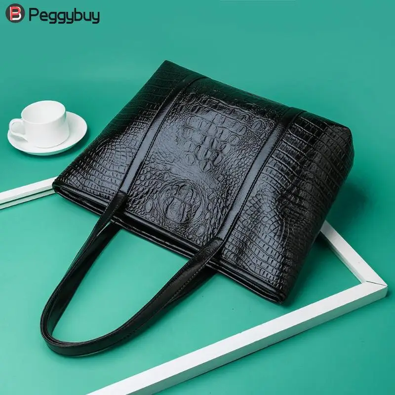 Сумка на плечо женская с ручками, модный саквояж с верхней ручкой, винтажный саквояж из крокодиловой кожи, вместительная сумочка для путешествий