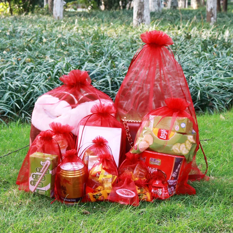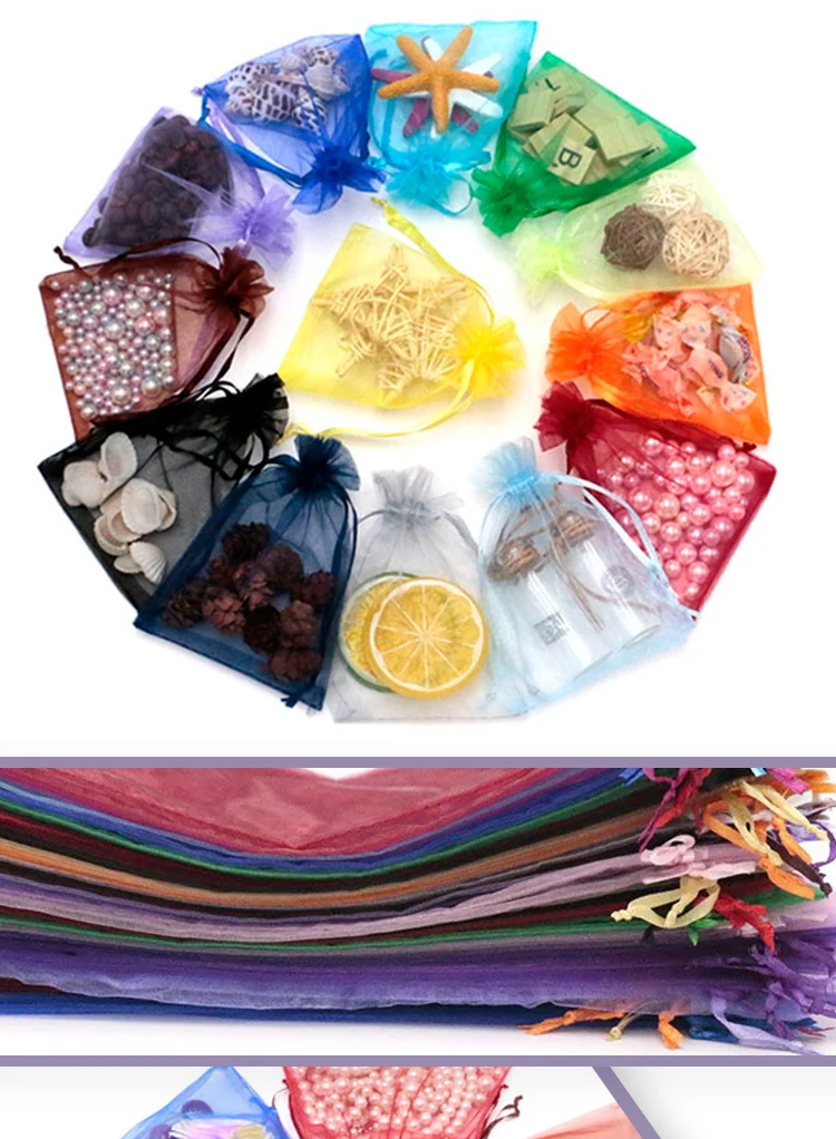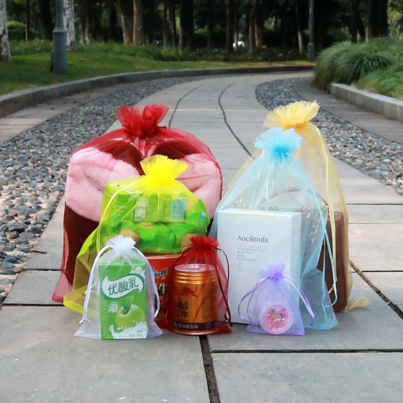 Оптовая продажа 50 шт.пакет 7*9 8*10 9*12 10*15 мешочки из органзы на шнурке для свадебной вечеринки Рождественский подарок упаковочный пакет