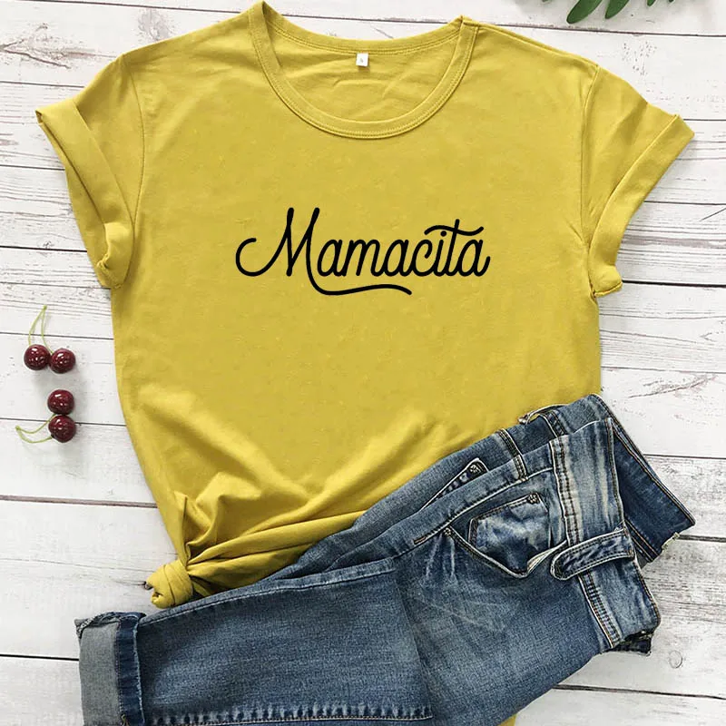 Женская футболка с круглым вырезом Mamacita, хлопковая Повседневная футболка с короткими рукавами и забавными буквами в стиле Харадзюку, большие размеры