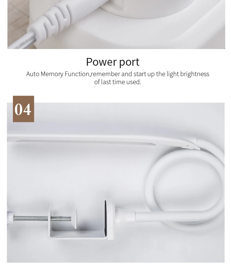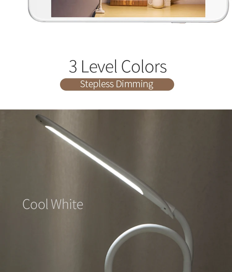 Лампа огонь! Изготовлена очень качественно. Струбцина крепкая, питание очень компактное, аккуратное, подводится к основанию ножки. Сама ножка из софт-тач пластика, очень приятного на ощупь. В общем выглядит солидно и здорово! Световых режима 3: холодный белый, нейтральный и тёплый жёлтый. Яркость также регулируется в очень широком спектре. Всё регулирование осуществляется через одну сенсорную кнопку вкл/выкл. К покупке однозначно рекомендую!!!!!!!