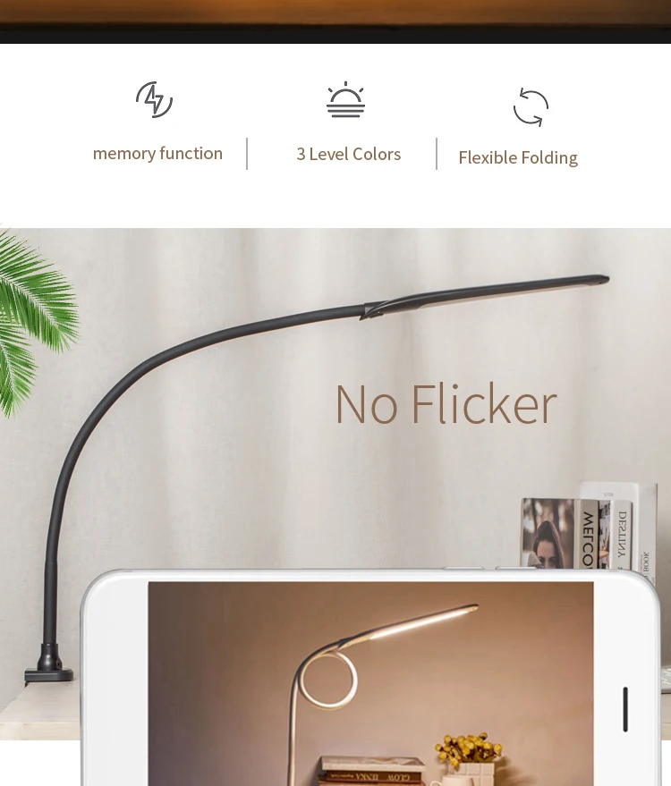 Настольная Светодиодная лампа с длинной ножкой, гибкий приглушаемый светильник на гибкой ножке с сенсорным управлением, с клипсой, для чтения, спальни, 3 режима цвета доставлена в течегие месяца в целостности и сохранности. Продавца и товар рекомендую