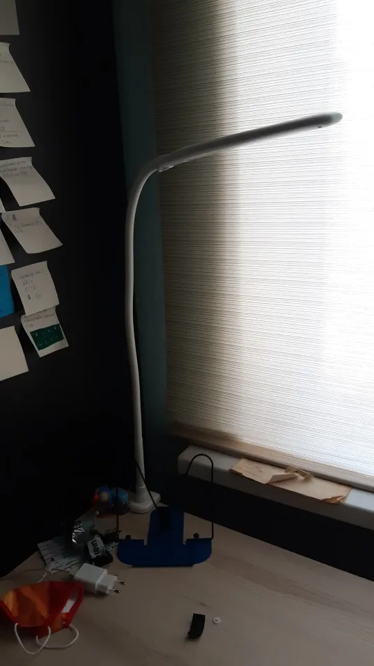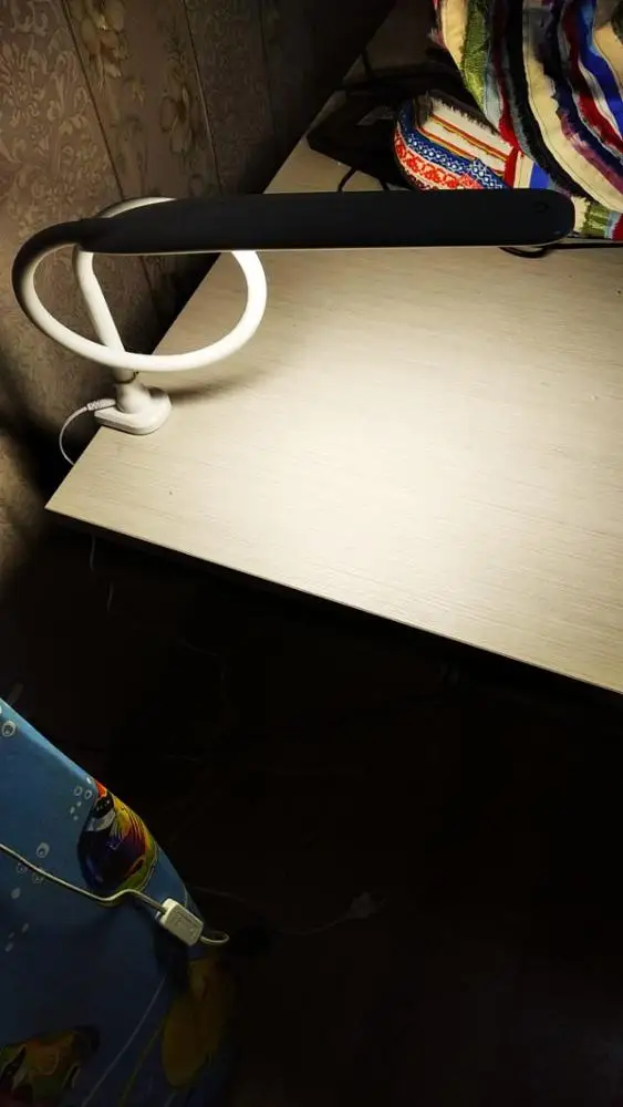 Лампа хорошая, добралась примерно за неделю. Занимает мало места, крепление выглядит впечатляюще. Огромный болтище и площадка с рифлёной резинкой, чтобы не скользило по столешнице. Нога длинная, что пришлось очень кстати к большому столу. Светит достаточно ярко, примерно так же, как люминесцентная аналогичного размера, может даже чуть ярче. Управление интересное, но прикосновения распознает не всегда. Немного неудобно, что для выключения надо ткнуть три раза, но это ничего, отклик быстрый. Яркость настраивается, мерцания нет