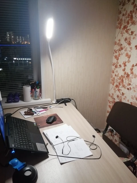 Отличная лампа. Крепится куда угодно, в разумных пределах. Цветность хорошая, от теплого, лампового до холодного белого, регулируется по яркости долгим касанием. Не мерцает. Светит отлично. И ребенку уроки делать, и ночью за мониторами в качестве фонового освещения - мне нравится, очень удобно. Ножка гибкая, длинная. Теперь хочу такой же на аккумах)) Смело рекомендую к приобретению. Продавцу спасибо за оперативность. Заказ приехал дней за 10 в Иркутск, доставка курьером IML.