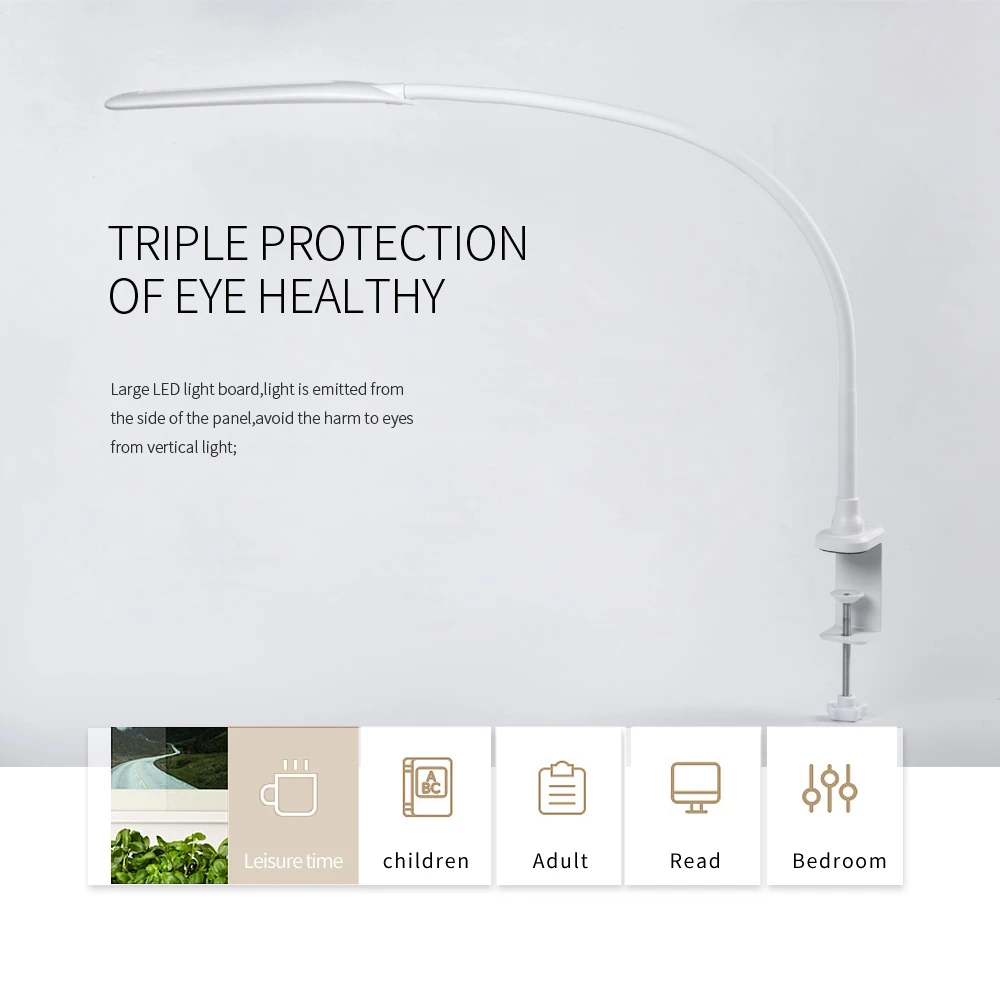 Настольная лампа с длинным кронштейном, светодиодная Гибкая Настольная лампа с затемнением на гибкой шее, для чтения, спальни, светодиодный светильник, 3 режима цвета