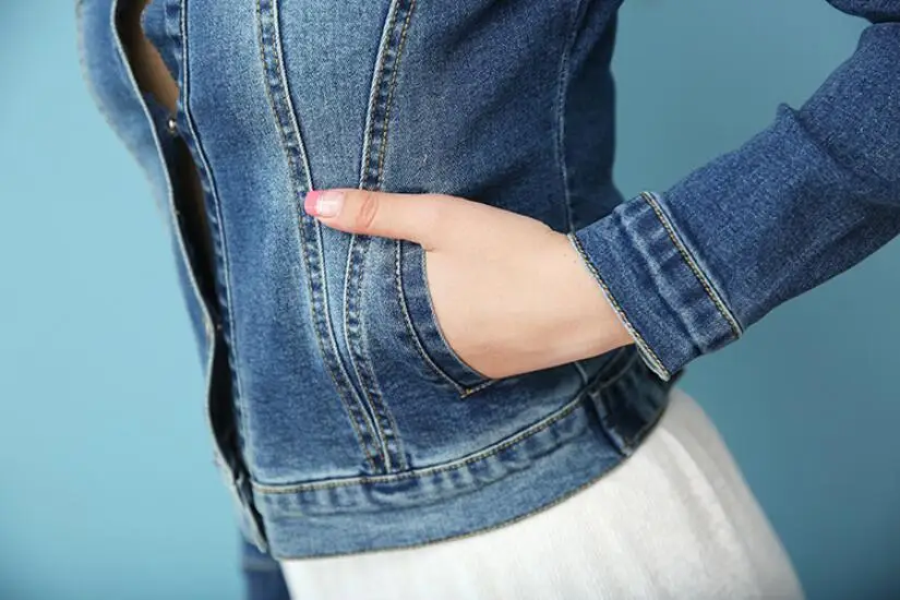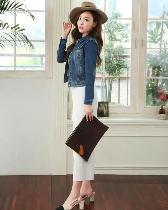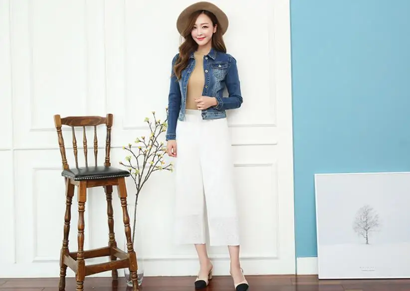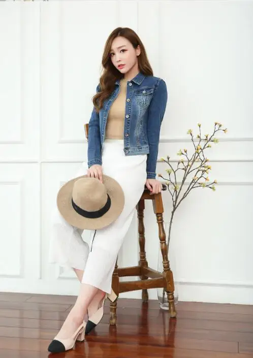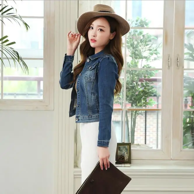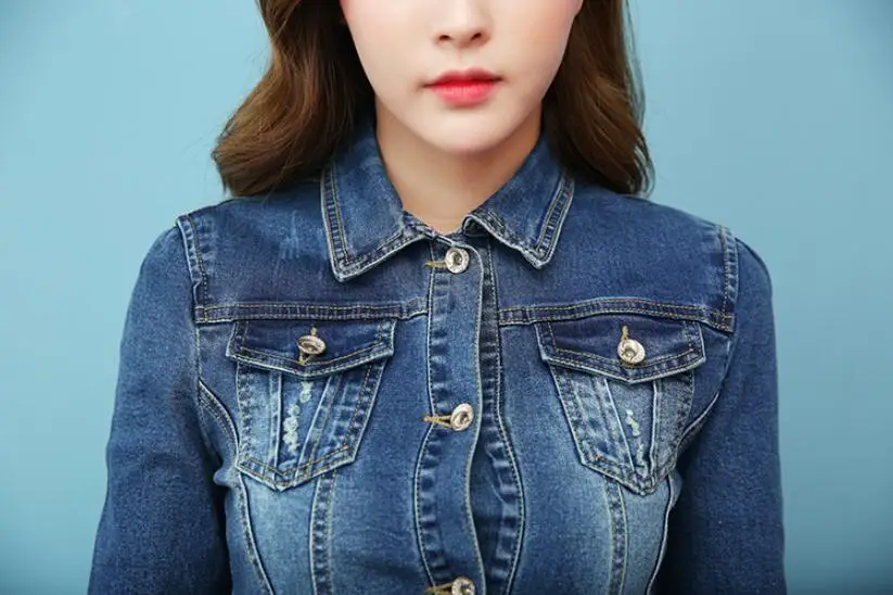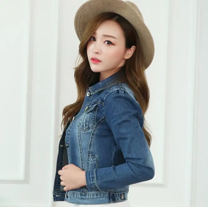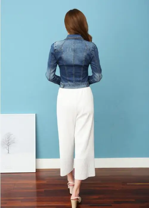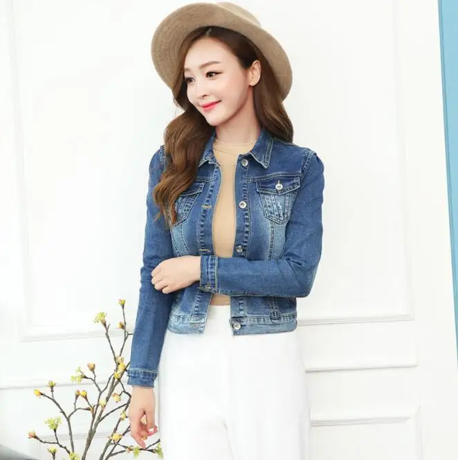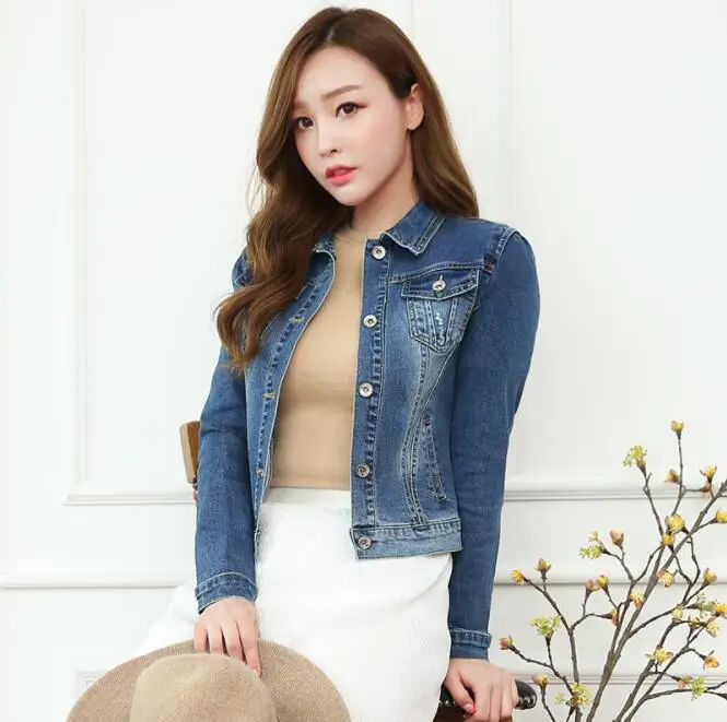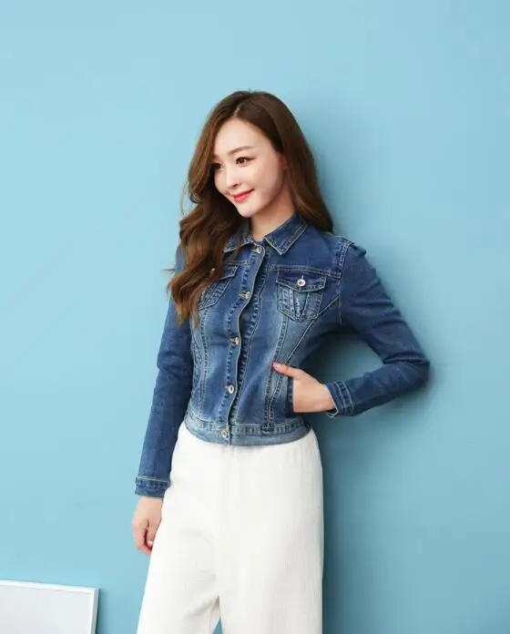 Куртка женская джинсовая стрейчевая с длинным рукавом, Короткая синяя куртка из денима, новинка 2021