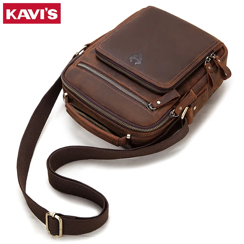 Сумка кросс-боди KAVIS мужская из кожи, портфель-мессенджер Crazy H...
