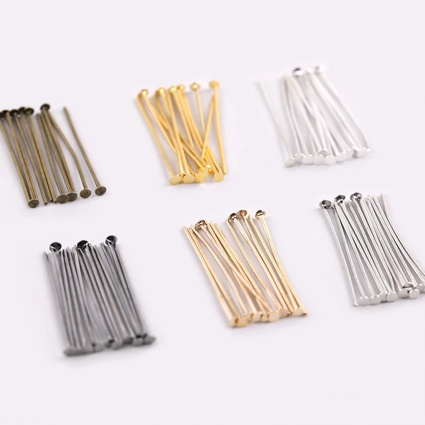 Плоские штифты диаметром 0,8 мм, 100-200 шт.пакет 20-50 мм, золотистыеСеребристыеРодиевыеБронзовые штифты для бижутерии, аксессуары