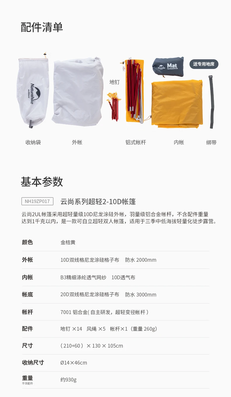 Naturehike Cloud Up 10D палатка для кемпинга 2 человека 950 г нейло...