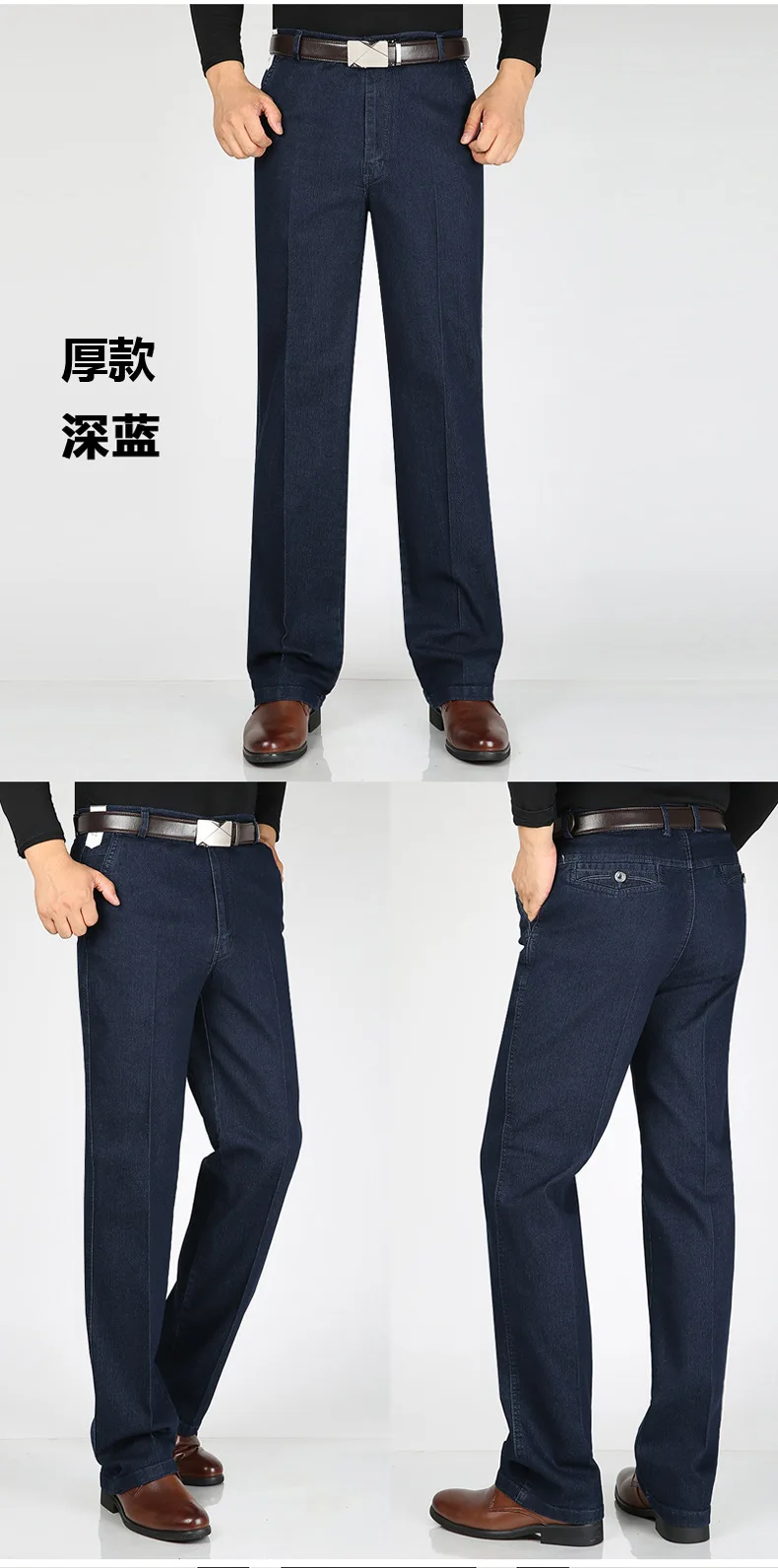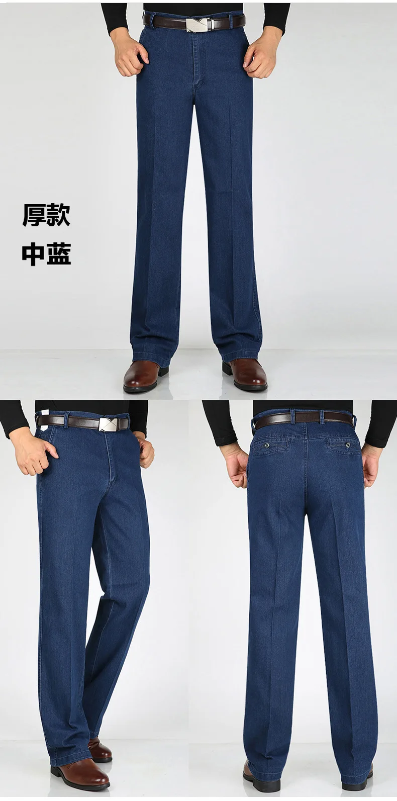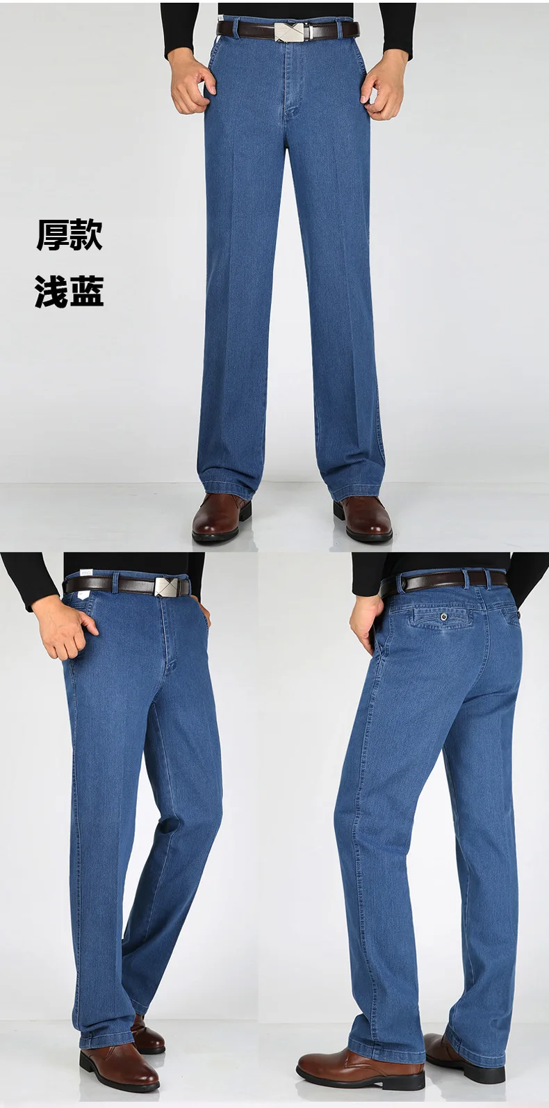 2022 мужские джинсы с высокой талией, свободные эластичные деловые повседневные джинсовые брюки