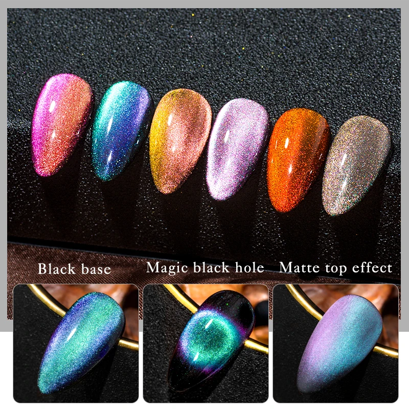 Спецификация:Тип товара: гель для ногтейСостав: УФ-Гель-лакОбъем: 5 млКоличество: 1 шт.Тип: Гель-лакОтмачивание: ДаСушка: УФ светодиодный ная лампаЭффект: магнитныйПосылка:1*5 мл Магнитный Гель-лакШаг за шагом:1. Очистите ногти, затем обрежьте поверхность ногтя в процессе обычный ноготь дизайна.2. Полностью встряхните Гель-лак, это поможет сбалансировать Цвет гель-лака. (ВАЖНО)3. Сначала нанесите Базовое покрытие, чтобы Гель-лак дольше держался, засушите с помощью УФ-лампы или светодиодный Ной лампы. (Необходимо)3. Нанесите слой геля черного цвета и просушите. (необходимо)4. Нанесите первый слой магнитного геля и высушите его.5. Нанесите второй слой магнитного геля, держите магнит близко к поверхности ногтя в течение 5-10 секунд и высушите.6. Нанесите верхний слой и просушите.Как снять УФ-гель для ногтей:• Замочите ногти в стеклянной миске, наполненной небольшим количеством чистого ацетона, или Заверните каждый ноготь в ватный диск, смоченный чистым ацетоном, на 5-10 минут.• Изделие начнет становиться мягким, и вы можете аккуратно отшлифовать его или соскользнуть с помощью небольшой деревянной палочки.