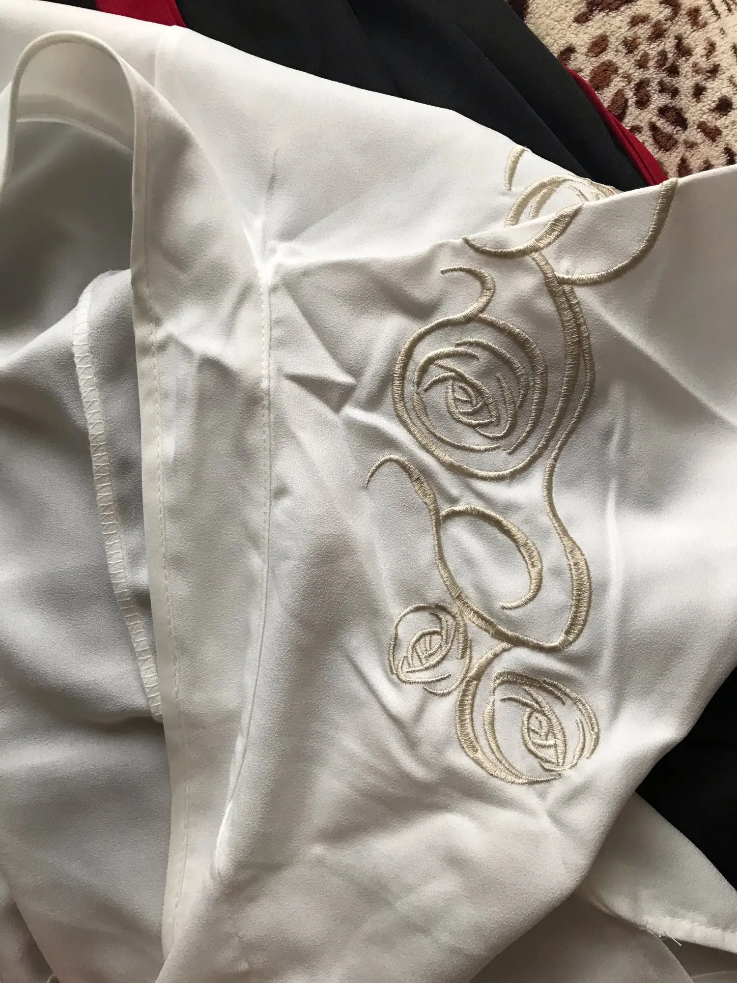 В соответствии с описанием, как фотографии клиентов, легкая полиэфирная ткань для верха и кимоно, юбка непрозрачна, чтобы хорошо гладить позже, чтобы переделать складки. По цене это остается хорошим соотношением цены и качества.