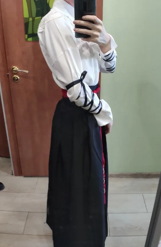 Очень красивый и удобный ханьфу, мне нравится. Единственное только "но" - с юбкой не понятно, как ее надевать, нет разреза, куда продеть пояс(на другом моем ханьфу есть такой разрез). Но надел как-то все же. А так просто отлично, продавец положил заколку в подарок. На вид и ощупь очень дешёвая, но все равно приятно) А также переводные тату на лоб:) Вайб Хуа Чэна хд ig: akumayeou