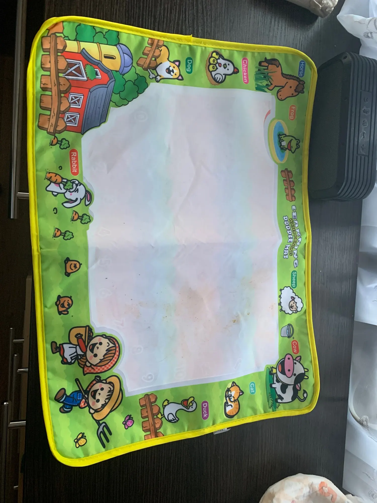 Ребёнку нравится, хороший коврик. В комплекте два маркера, которые надо заполнить водой. Через время один из них стал плохо промакать. Коврик боится спирта или спиртовых салфеток
