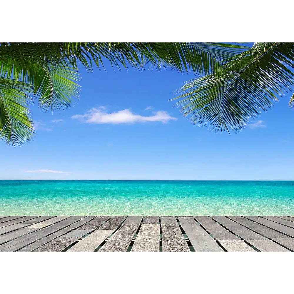 Виниловый фон для фотосъемки с изображением пальмы деревянного пола волн голубого неба и океана для свадебной детской портретной фотостудии