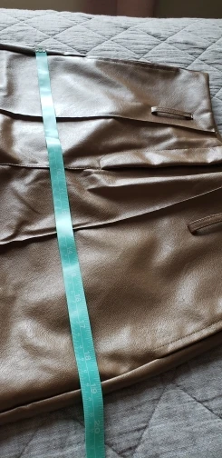 качество " кожи* отличное. совершенно не похоже на клеёнку. нет дешёвого блеска. по размерам на бедра 93 сели в обтяжку, а талия 63 есть свободное место. больше подойдёт у кого меньшая разница между бедрами и талией. по длине на рост 170 - по середину икры. цвет в живую красивый. пошиты неплохо. ремень в наличии, коже неплохой. брюки рекомендую.