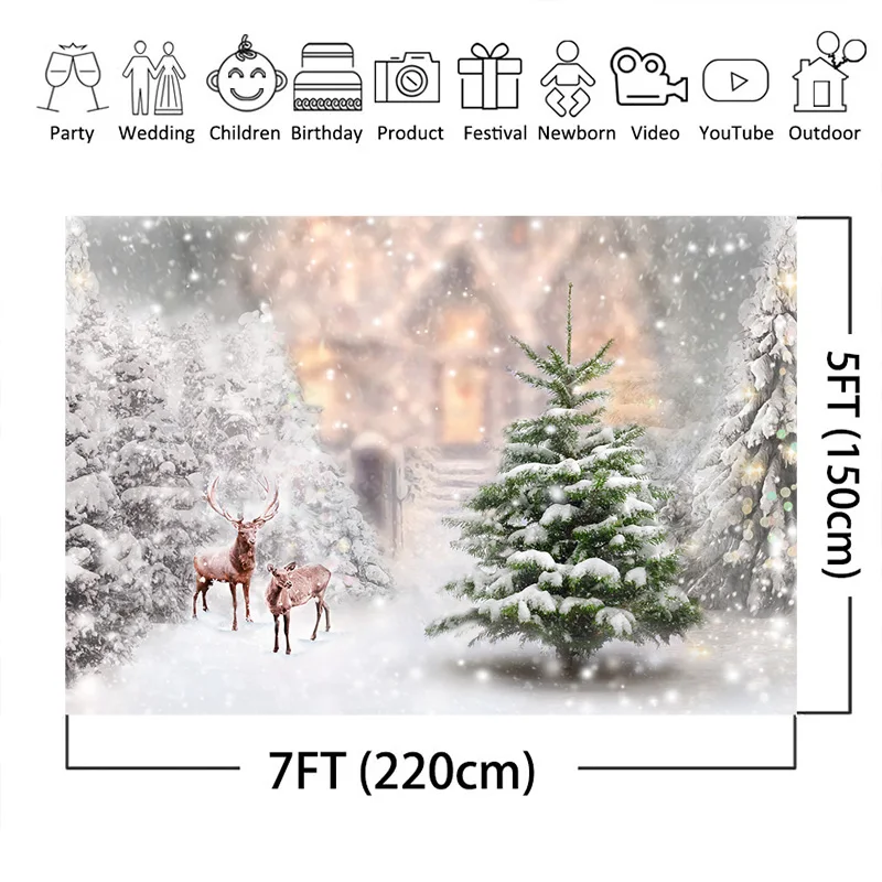 Рождественский фон для фотосъемки зимний боке дом Лось Снежная земля фон для фотосессий AN-1262
