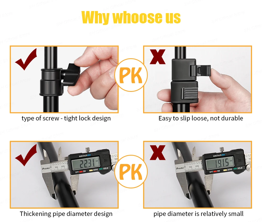 Отличная регулируемая Т стойка! Соответствует описанию. Хорошие фиксаторы, не проседают. Понравилось что тринога небольшая по диаметру, занимает мало места, сама стойка стоит устойчиво. Продавца рекомендую.
