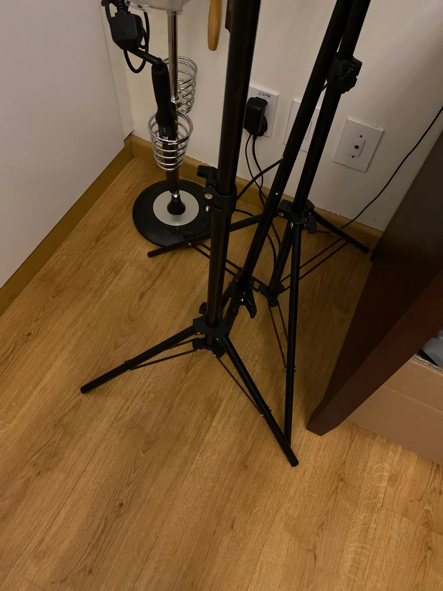 Неустойчивая стойка. Лёгкая конструкция, ножки друг от друга на маленьком расстоянии. Фиксатор регулятора высоты прокручивается, как будто резьба сорвана. Но пока держит.