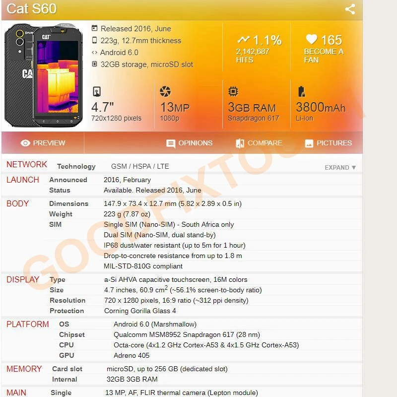 FeatureTouch Screen For CAT S60