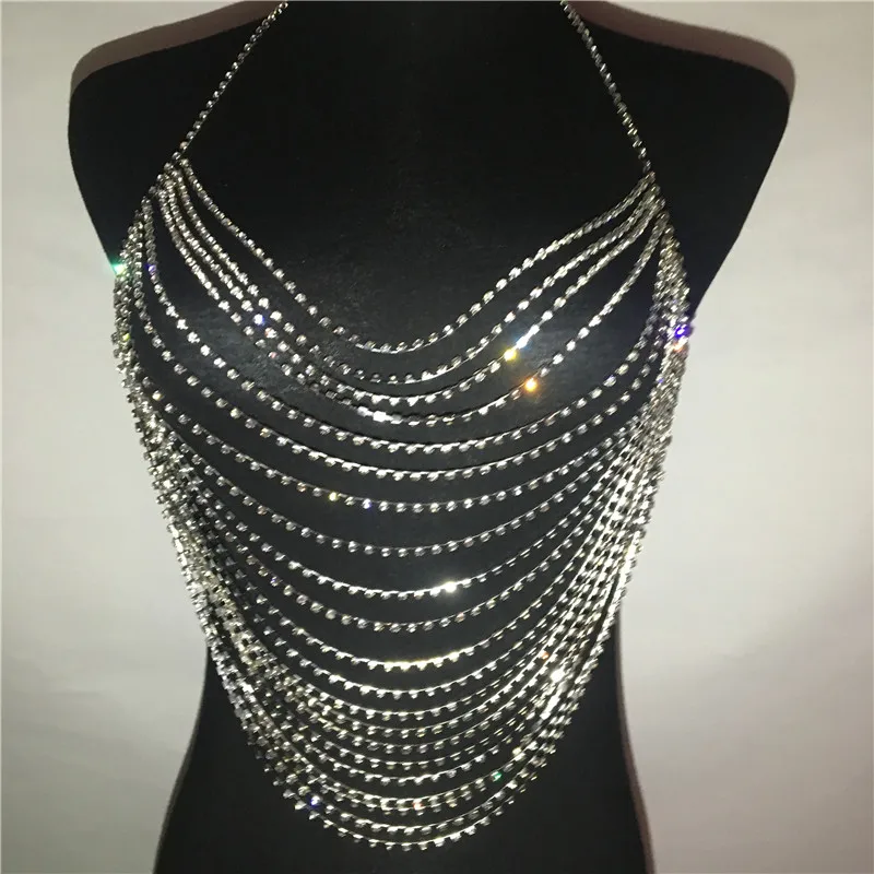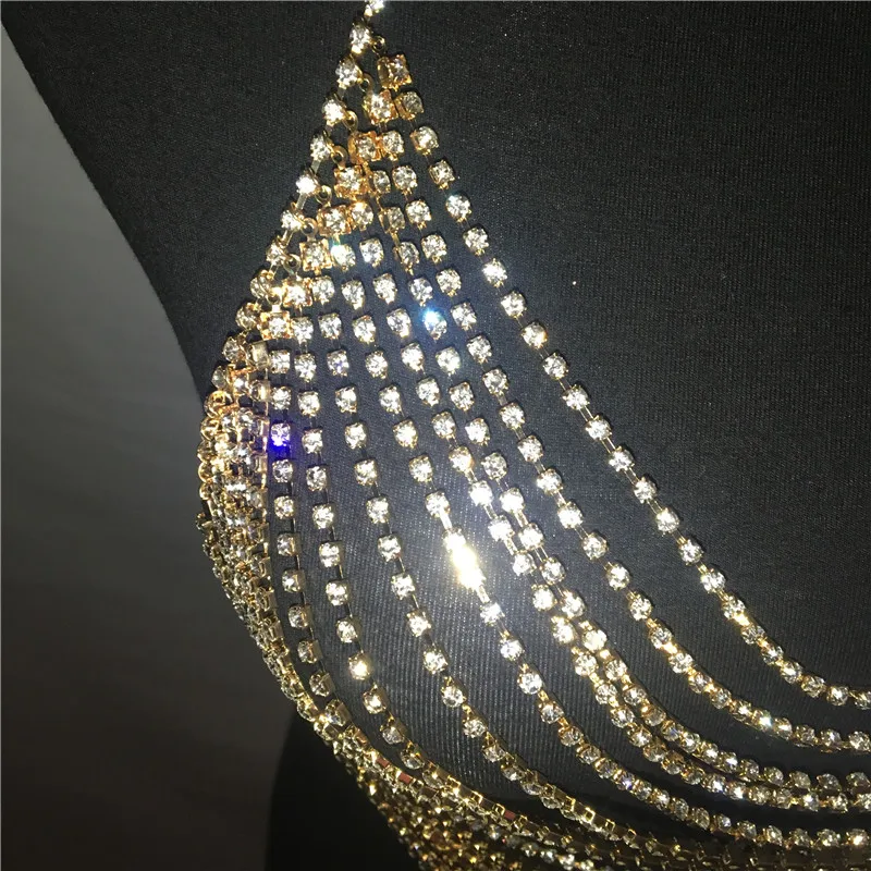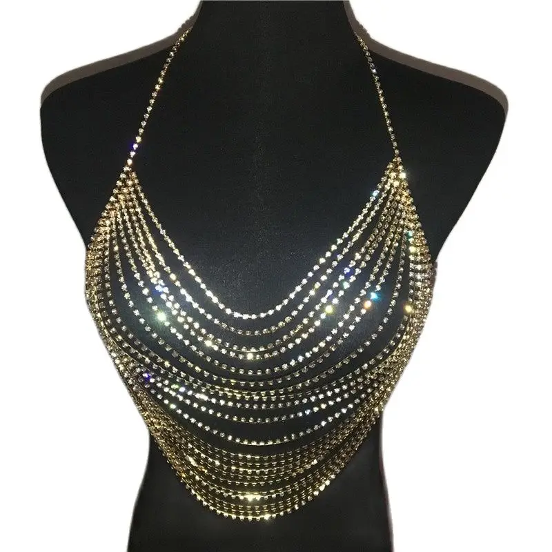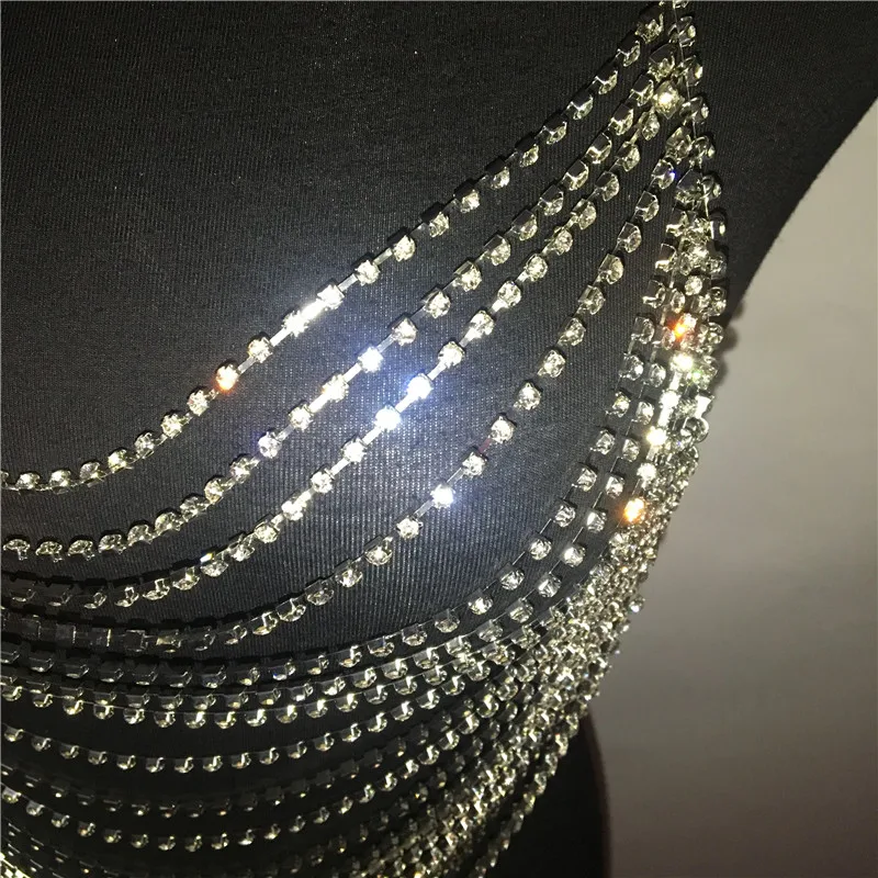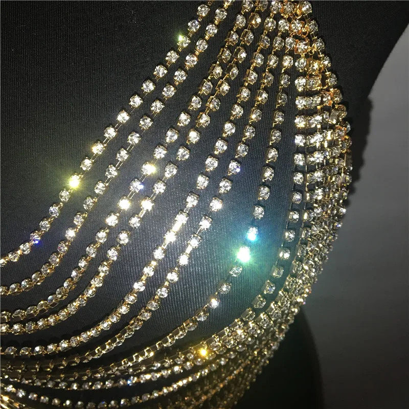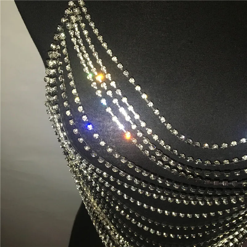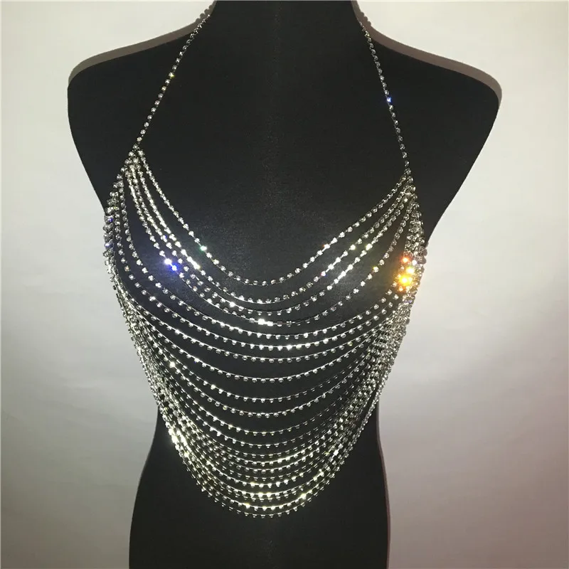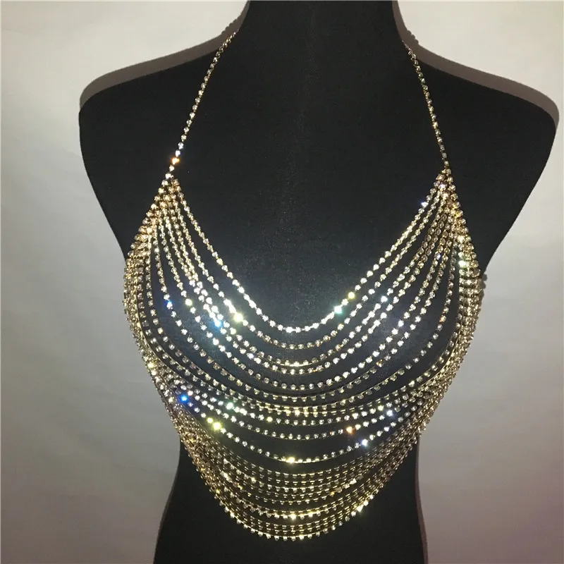 Золотистые Серебристые блестящие майки с кристаллами Стразы Многослойные бриллиантовые укороченные топы без рукавов с открытой спиной сексуальные женские топы для ночного клуба