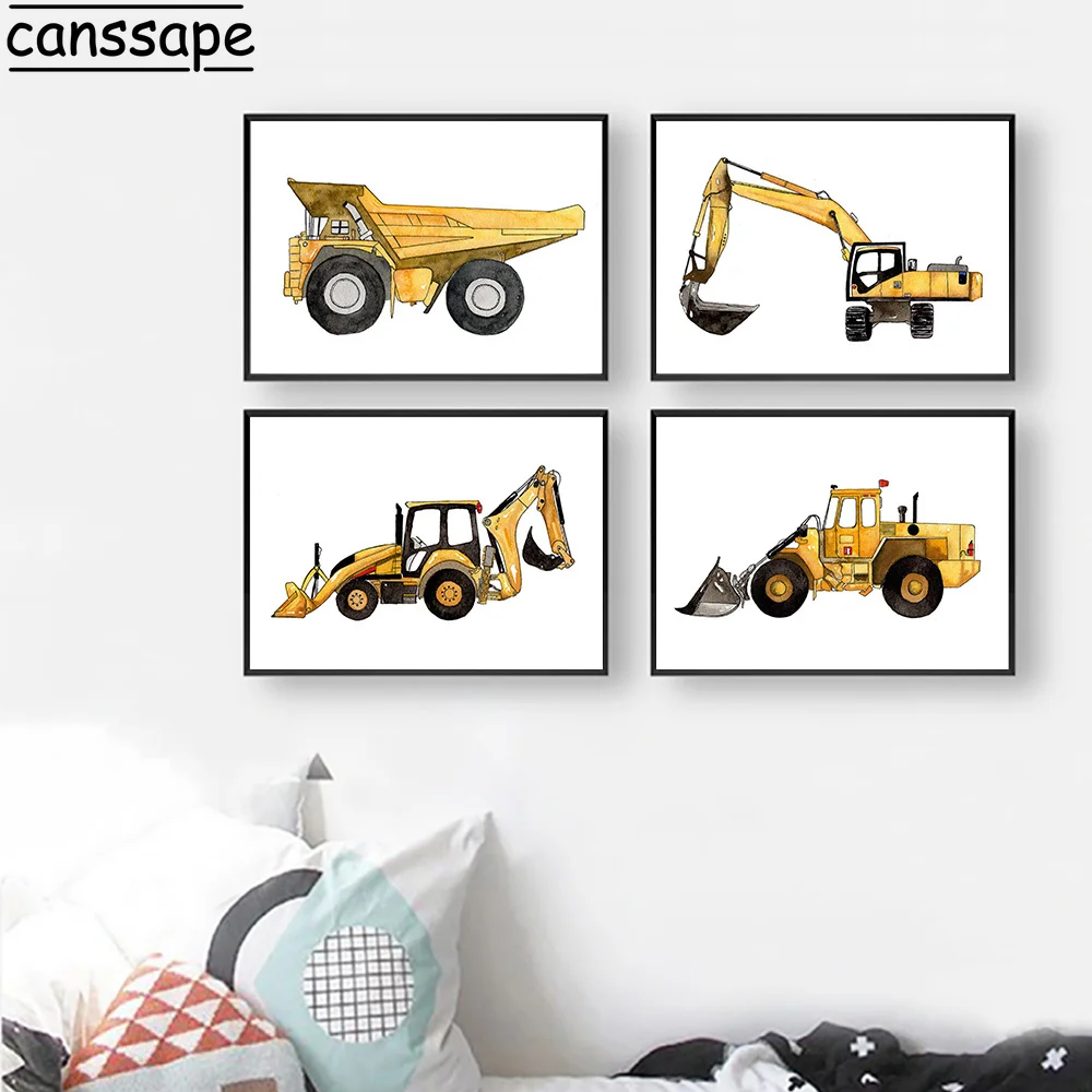 Строительный автомобиль, настенное искусство, Картина на холсте, грузовик, экскаватор, плакат, фотография комнаты для мальчика