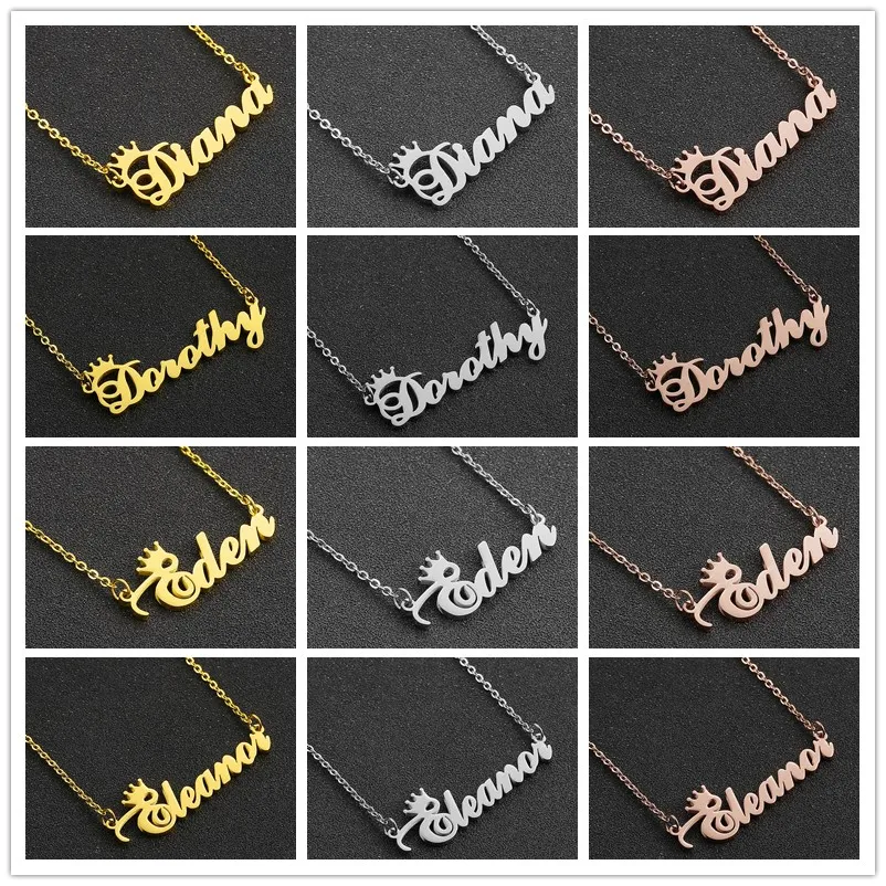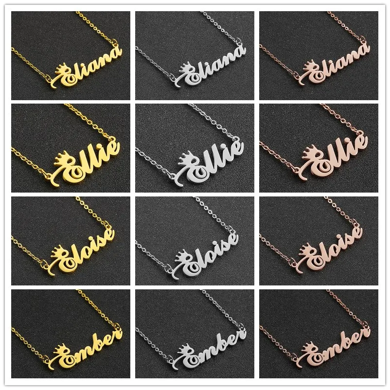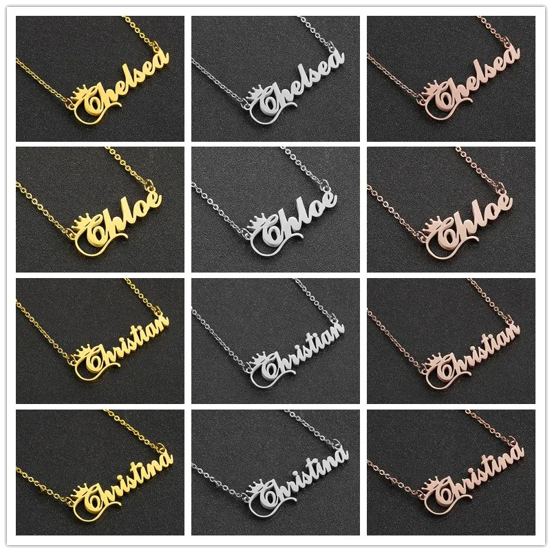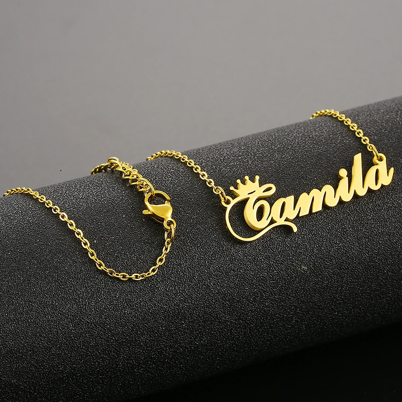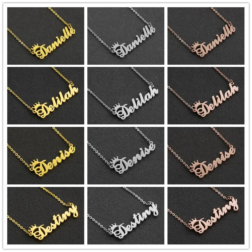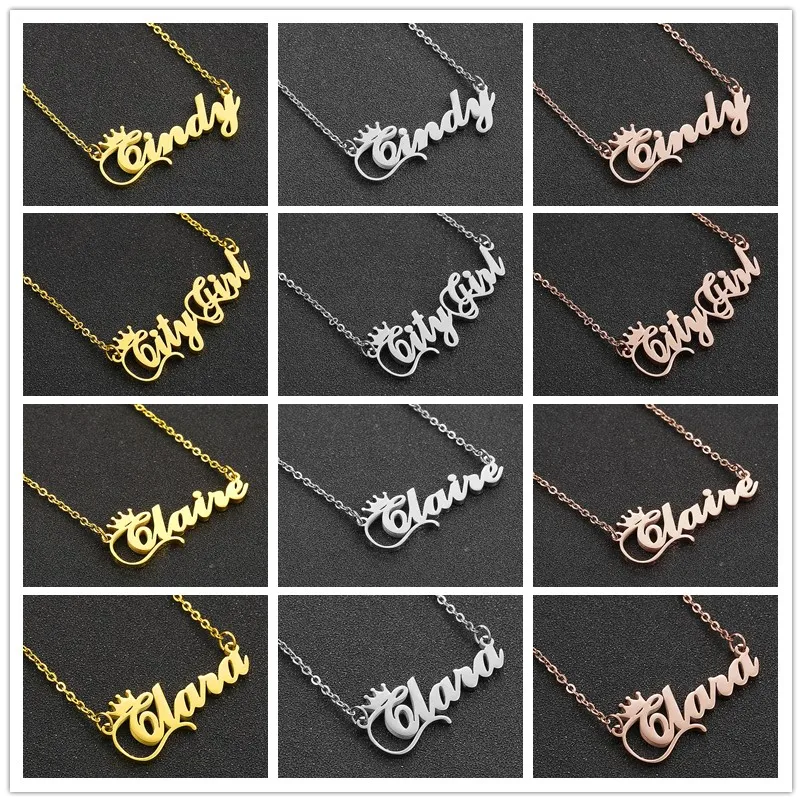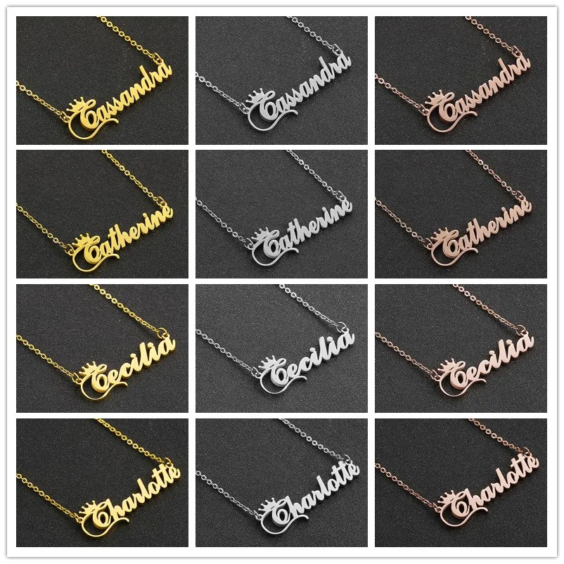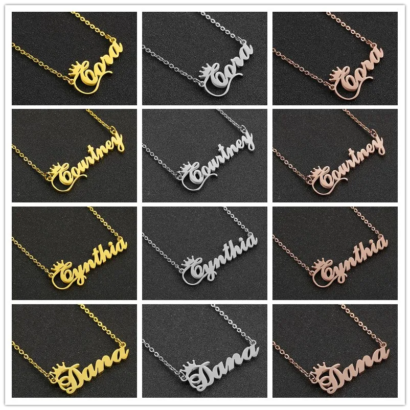 Персонализированное ожерелье с именем и короной, ожерелье с именной табличкой с надписью для женщин и девушек, ювелирные изделия на день рождения Кармен Кейси Синди Дана