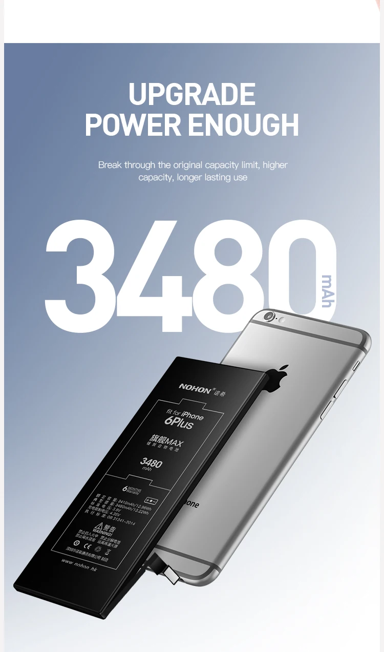Литиевый аккумулятор NOHON для Apple iPhone 6, 6S, 7, 8 Plus, 6splus, 7plus, 8plus