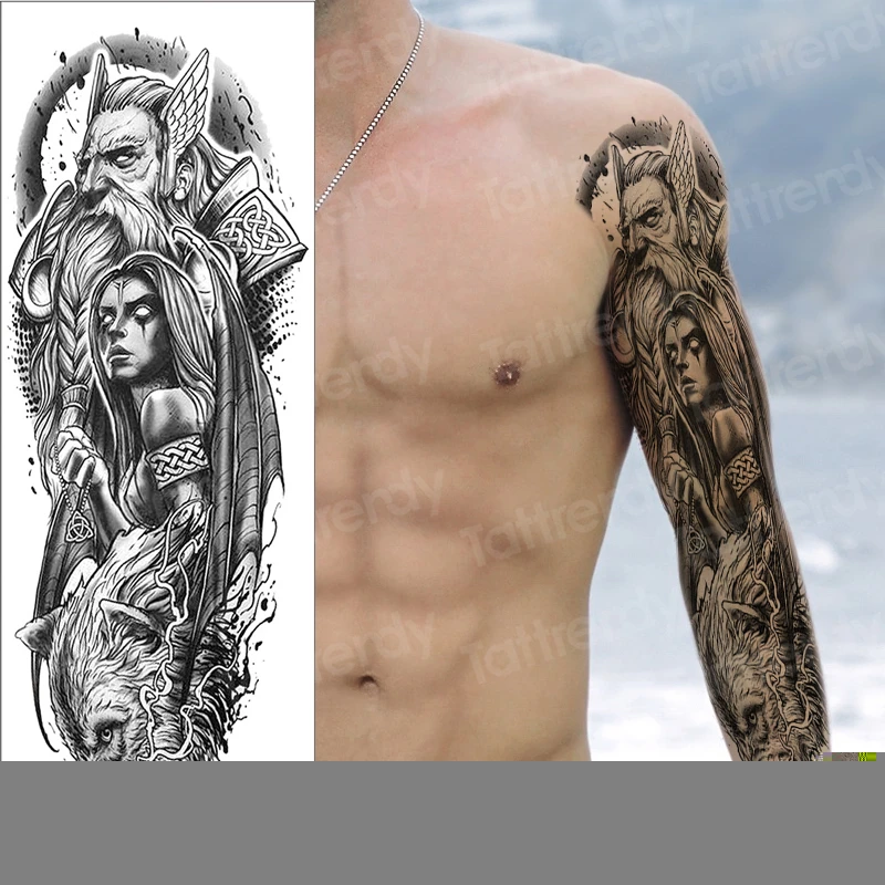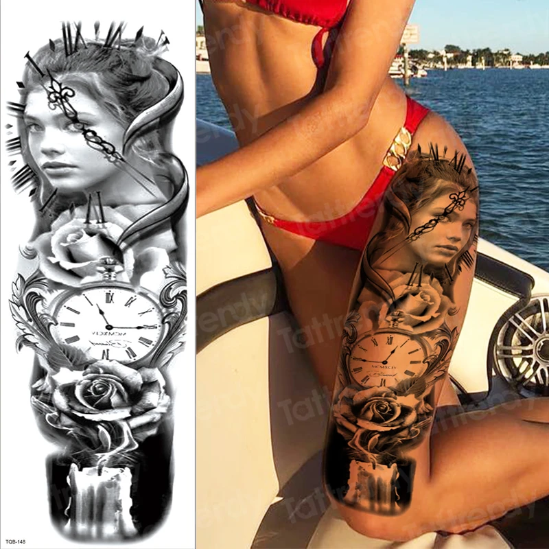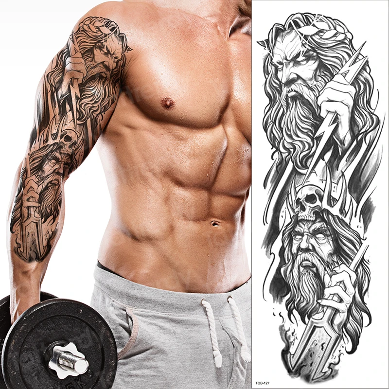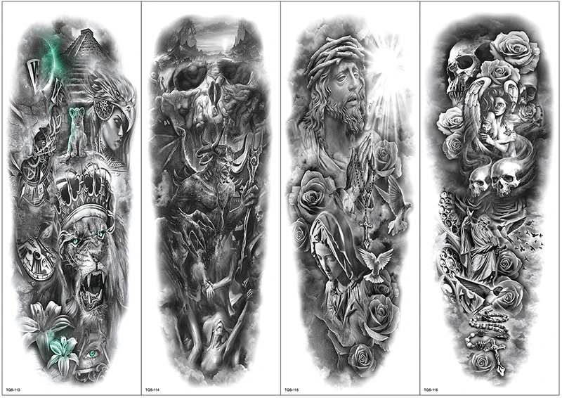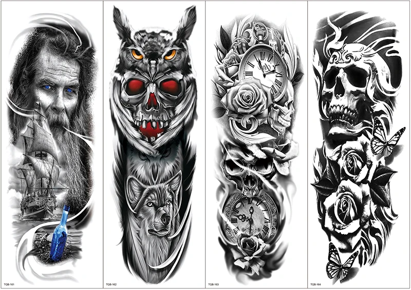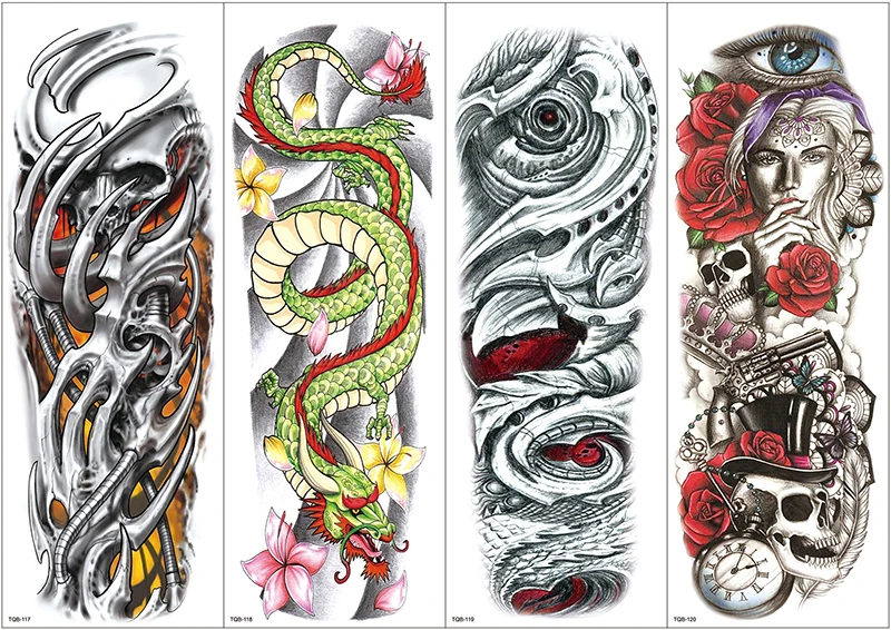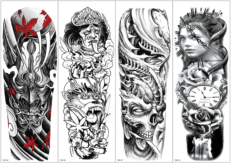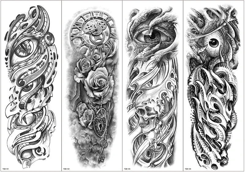 Временные татуировки, большие мужские рукава, тату, черные, большие размеры, водонепроницаемые, имитация татуировки для мальчиков, Готическая татуировка, сексуальная Наклейка на тело
