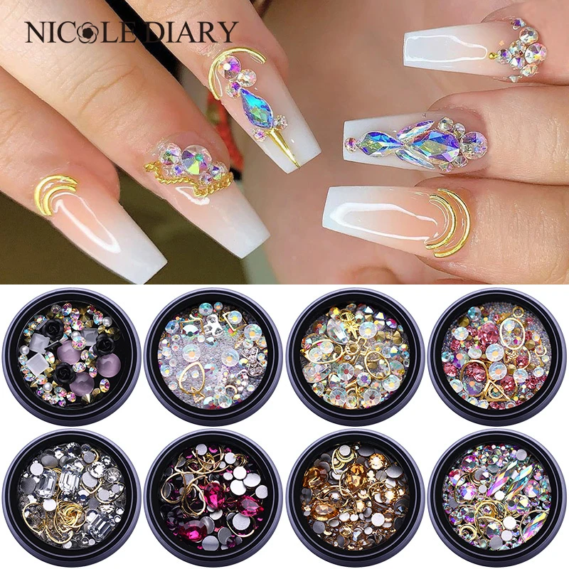 1 коробка 3D Стразы для ногтей камни смешанный цветные Переводные изображения с ногтей Изогнутый пинцет кристаллы для ногтей Дизайн ногтей дизайнерские украшения