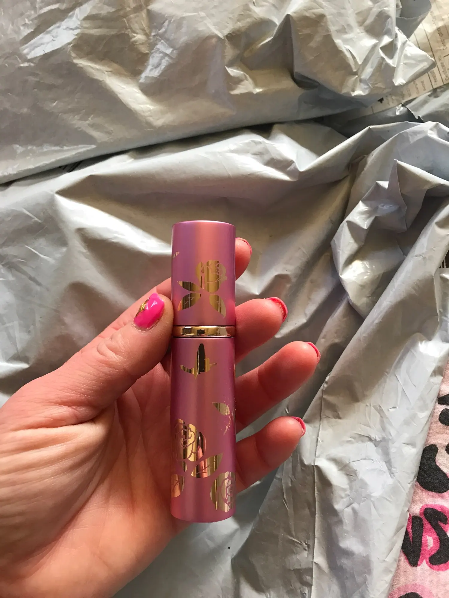 Я купил этот товар bc, у меня был такой же, как ребенок. Я не знаю, что я когда-либо сделал со старым, но когда я увидел этот, мне нужно было его получить. Действительно милый и маленький. Вы можете положить его в свой кошелек или разместить его на стойке для ванной комнаты в качестве декора. На бутылке есть маленькие бабочки и цветы.
