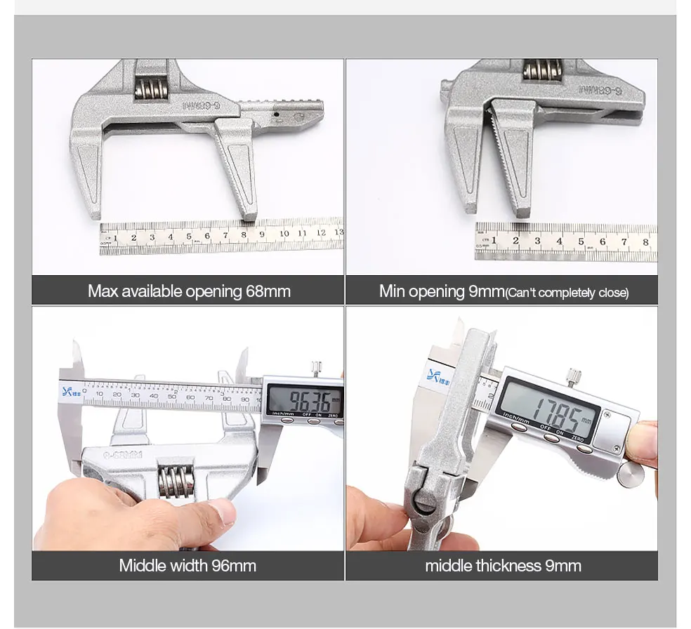 Всё как в описании. Товар доставлен в целости, с момента заказа примерно за 45 дней. Подвижную губку инструмента можно переворачивать и получать прямую или закруглённую форму. Не знаю как для металла, но для пластика сгодится. Товаром доволен. Спасибо продавцу.