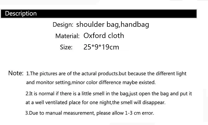 Посылка дошла за 3 недели. Были неясности с отслеживанием, поэтому даже открыла спор. После этого сразу же прояснилось, где посылка. Сумочка соответствует описанию и цене. Очень лёгкая, вместительная, качественная, много карманов, даже для зонта сбоку предусмотрены карманы. Конечно, не нарядная, простая, каждодневная сумка. Годится для работы, на рынок и т.п., когда нужно разместить много разных мелочей. кошельков и документов. Ткань типа болоньи или что-то похожее на нее. Единственное мне не понравилось - ручка, как у дешевой спортивной сумки. В принципе, за такие деньги вполне приличная сумка.