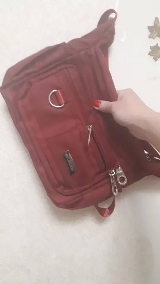 хорошая сумочка, размер самое то (боялась что большая будет) единственное мне не нравится, как стучат язычки от молнии при ходьбе и на них написано 2020, буду менять