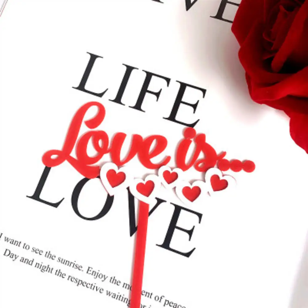 Топпер для торта, акриловый, золотистый, с сердечком, на День святого Валентина