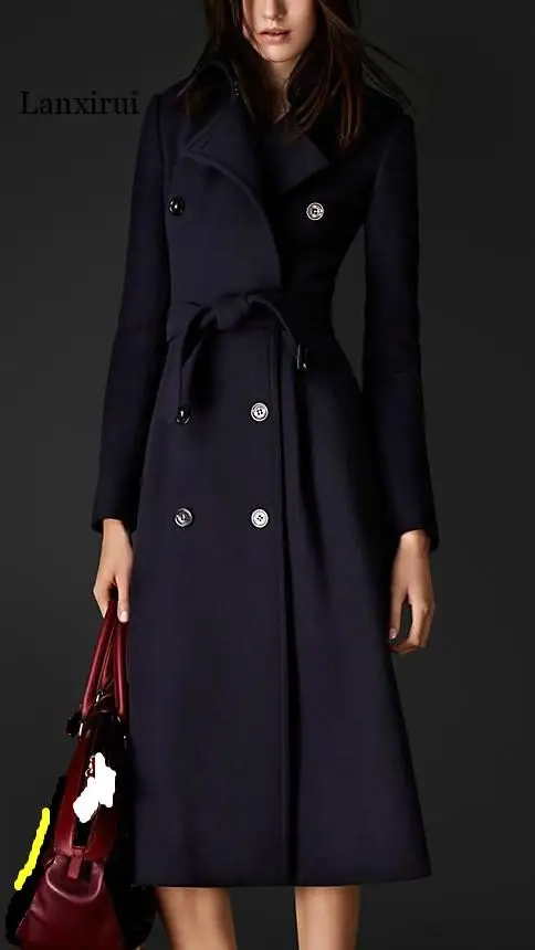 Lanxirui Весна Осень Модное шерстяное простое тонкое длинное пальто...