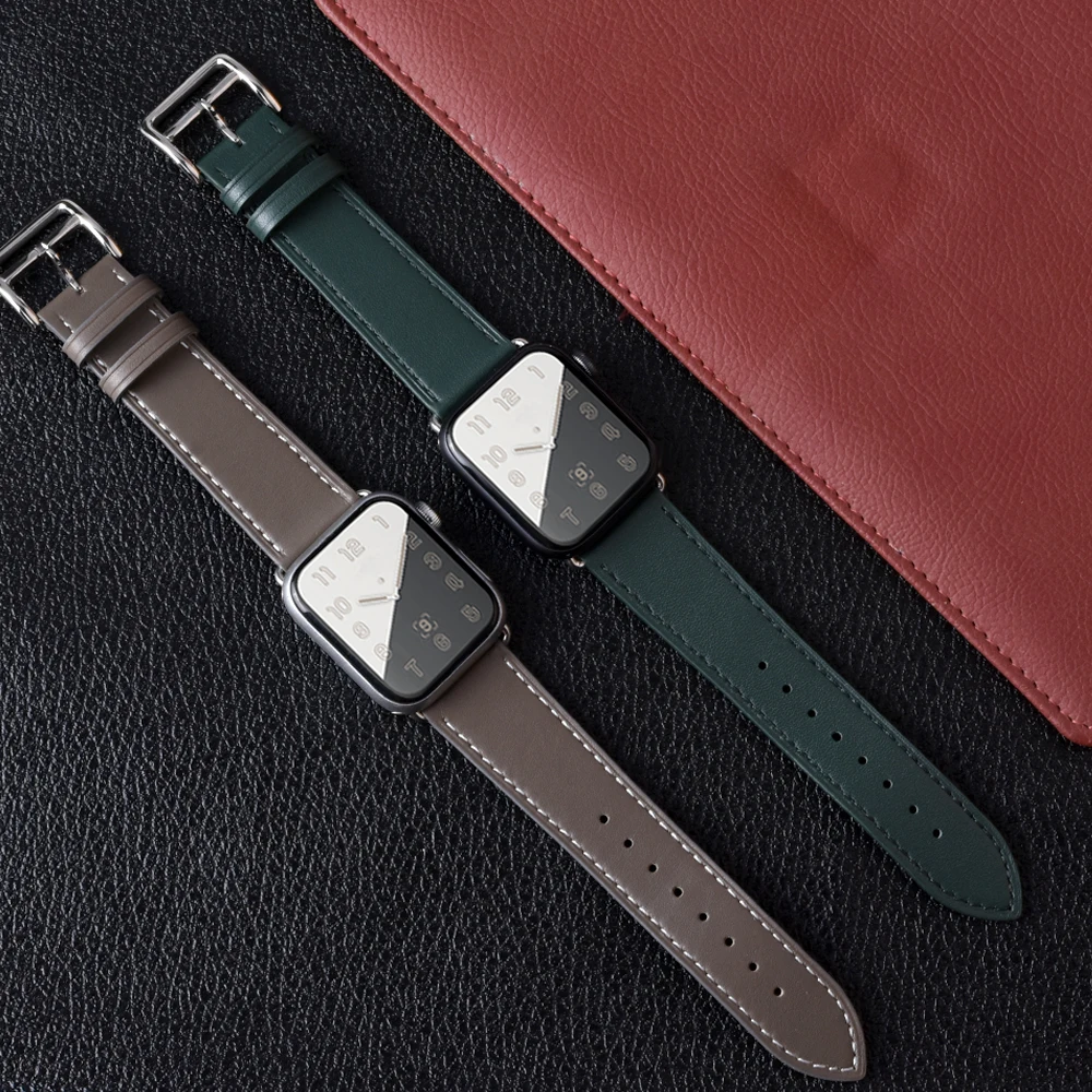 Ремешок из 100% натуральной коровьей кожи для Apple Watch 7 6 SE 5 4 42 мм 38 мм 44 мм 40 мм, ремешок для iWatch 41 мм 45 мм