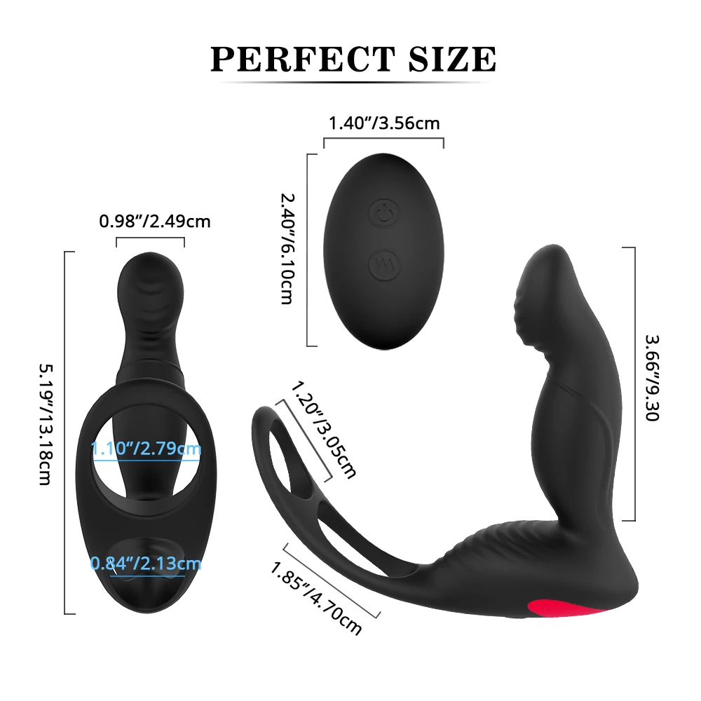 Очень приятный на ощупь, несколько режимов работы, в комплекте зарядка, пульт с батарейкой и запасная в подарок, расстояние от угла до второго кольца небольшое. Легкий в использовании. Хорошая вибрация.