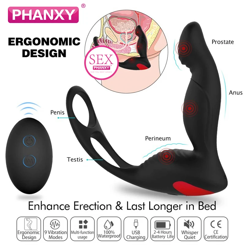 PHANXY мужской массажный вибратор простаты Анальная пробка Силиконовый водонепроницаемый массажер стимулятор Анальная Задержка эякуляции кольцо игрушка для мужчин