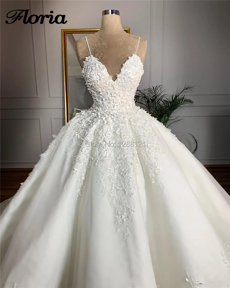 Мусульманские кружевные свадебные платья с цветочным рисунком, турецкое Свадебное бальное платье с 3D цветами, платье невесты с V-образным вырезом для Саудовской Аравии, гелинлик