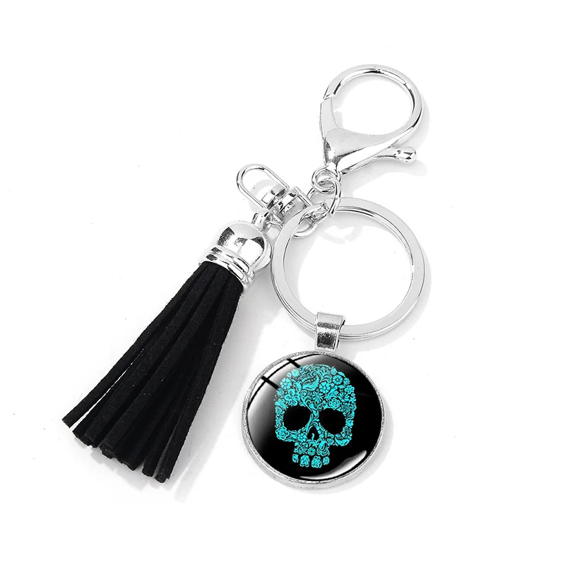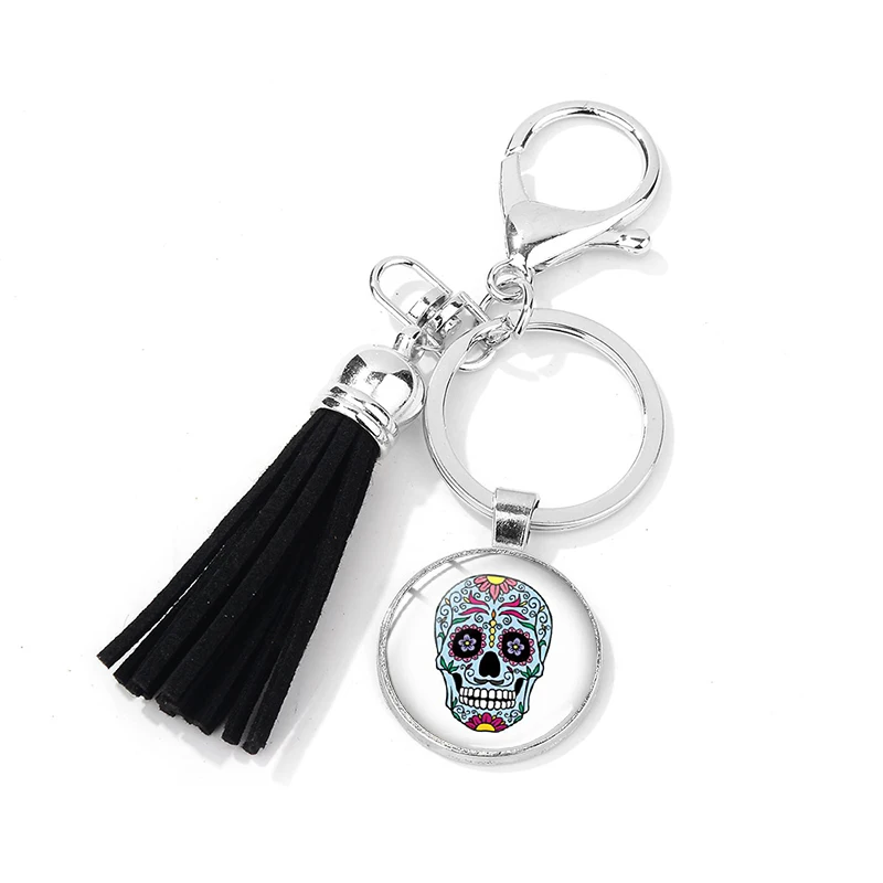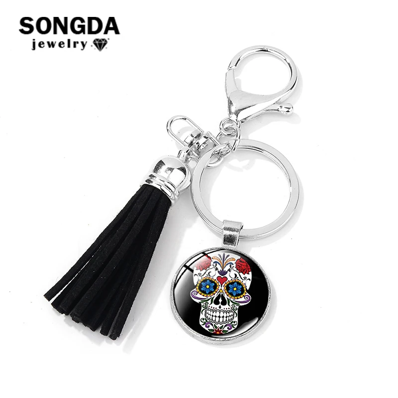 SONGDA мексиканское народное искусство Сахарный Череп кисточка брелок картина стеклянный купол Подвеска металлический брелок день мертвецов украшение