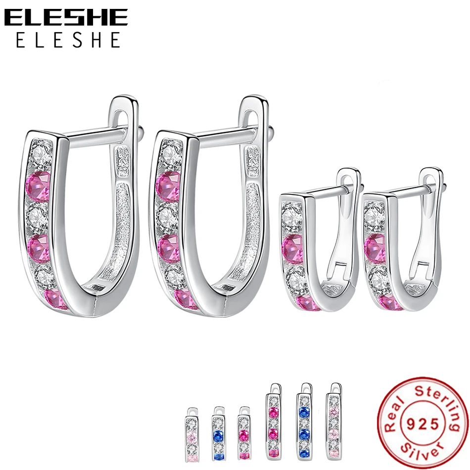 Рождественский подарок ELESHE, серьги-кольца из стерлингового серебра 925 пробы с круглыми кристаллами циркония для женщин и детей, Модная бижутерия